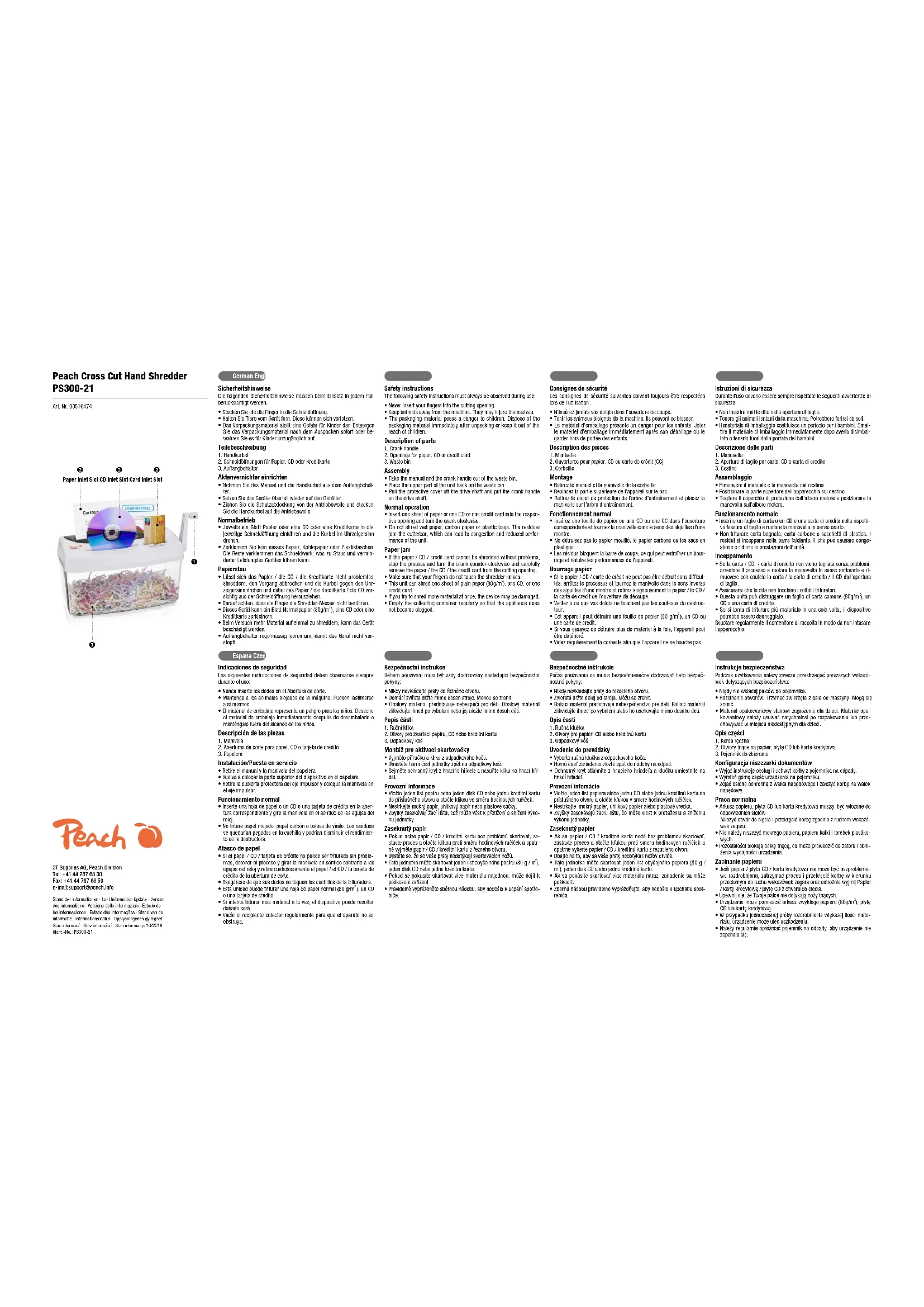 PS300-21 - Destructeur de document Peach - Notice d'utilisation et mode d'emploi gratuit