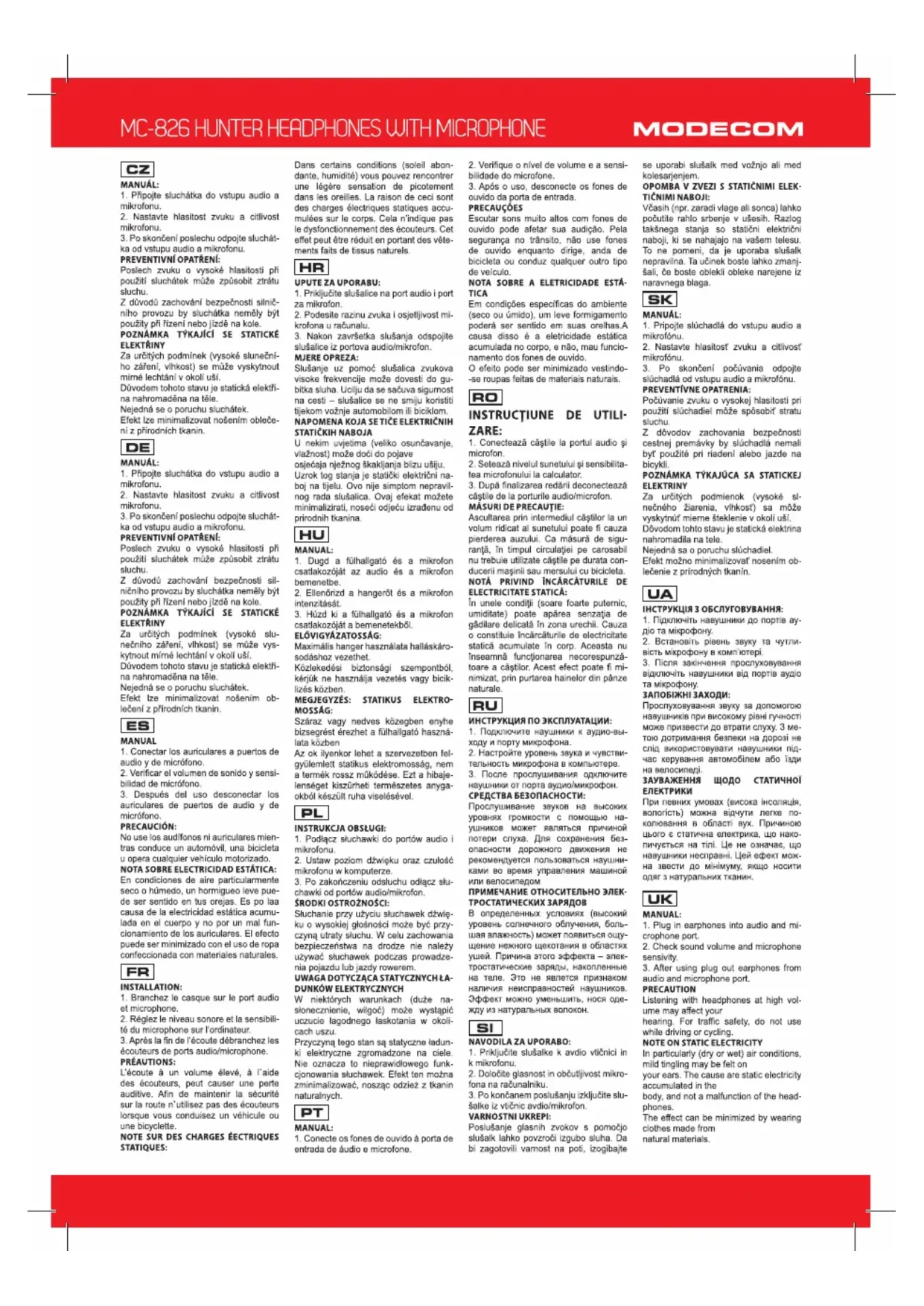Téléchargez la notice de votre Ecouteur au format PDF gratuitement ! Retrouvez votre notice MC-826 Hunter - ModeCom et reprennez votre appareil électronique en main. Sur cette page sont publiés tous les documents nécessaires à l'utilisation de votre appareil MC-826 Hunter de la marque ModeCom.