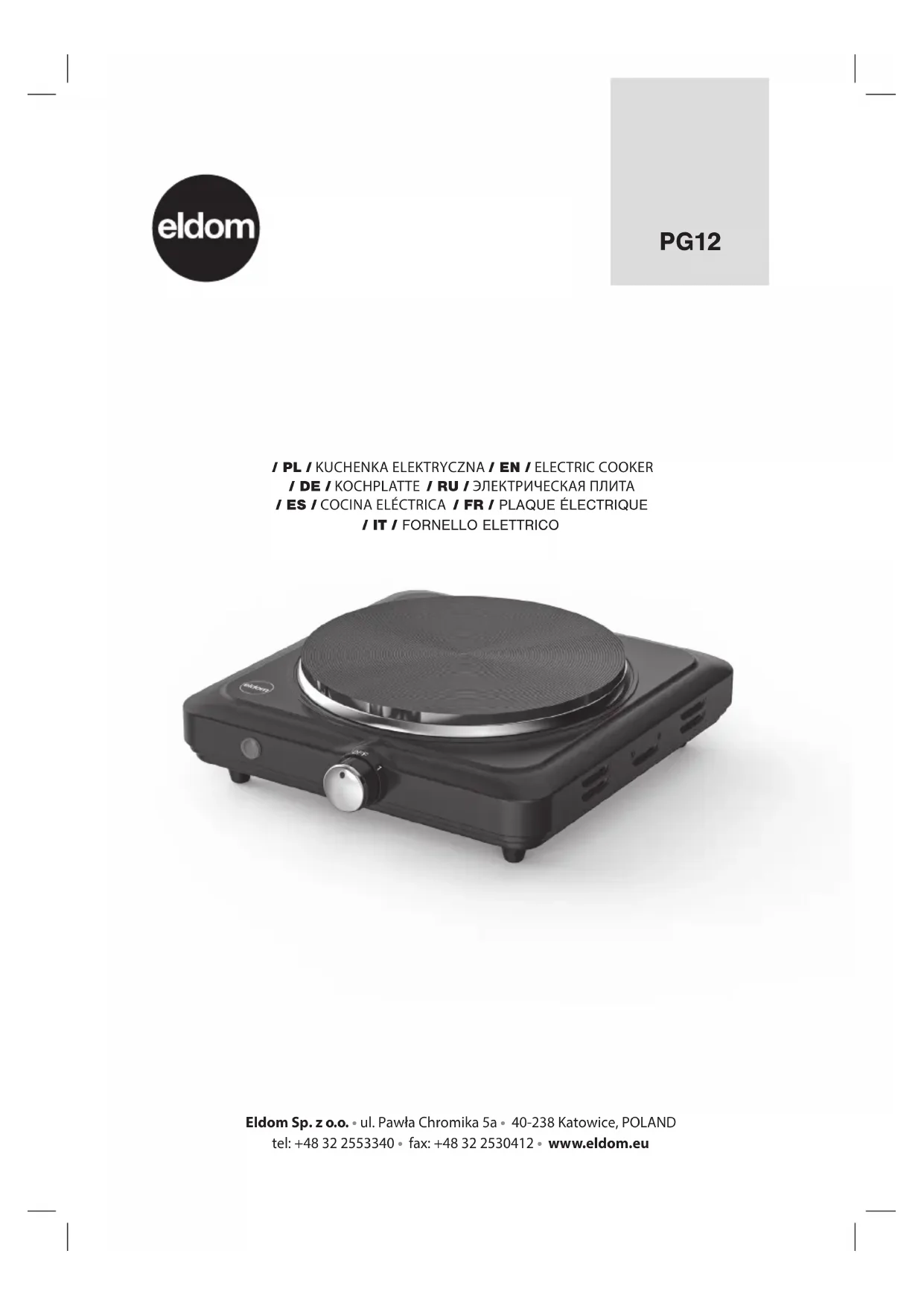 Retrouvez gratuitement la notice de l'appareil MASTER SOLO PG12 Eldom au format PDF.