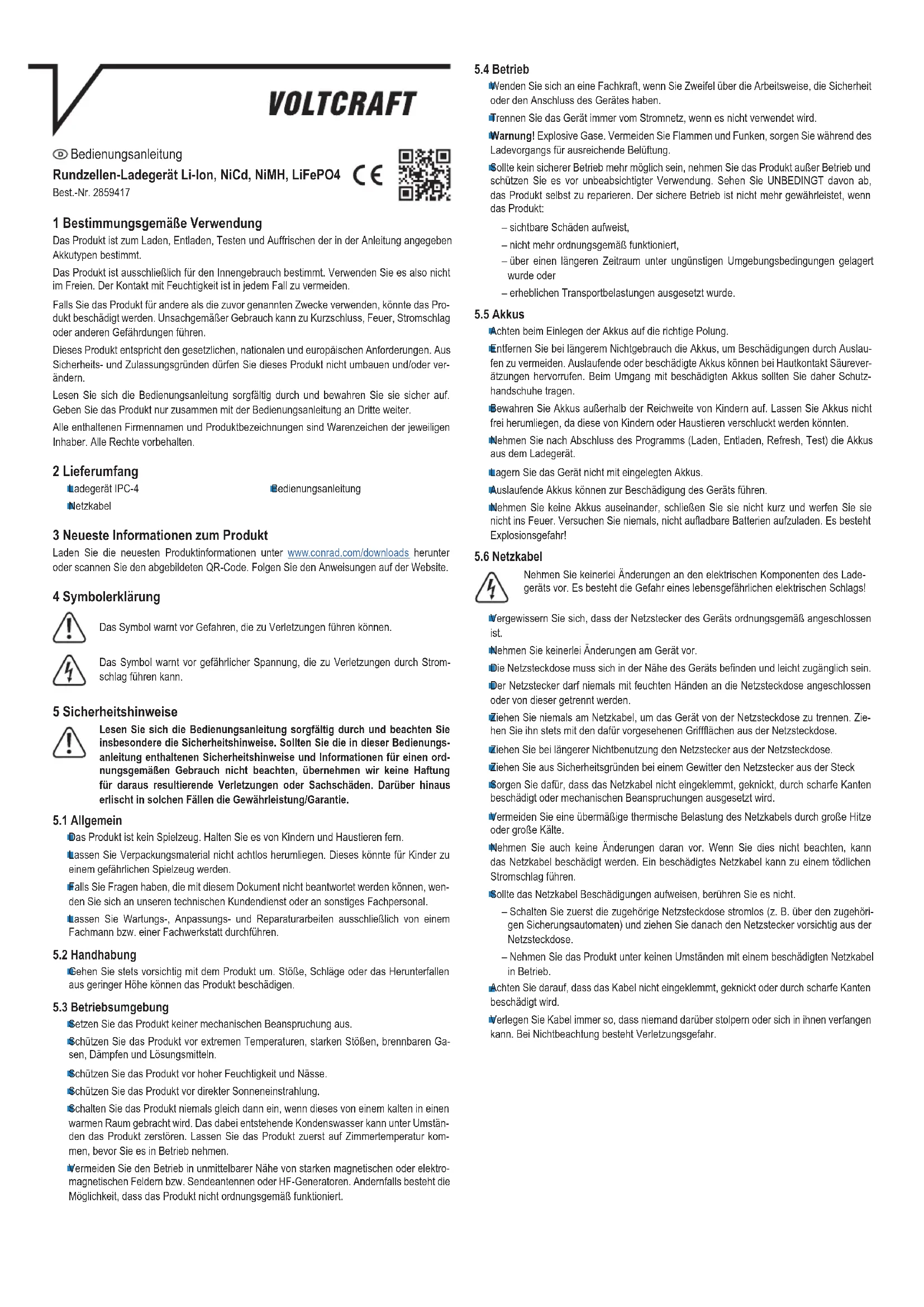 IPC-4 - Chargeur de piles VOLTCRAFT - Notice d'utilisation et mode d'emploi gratuit