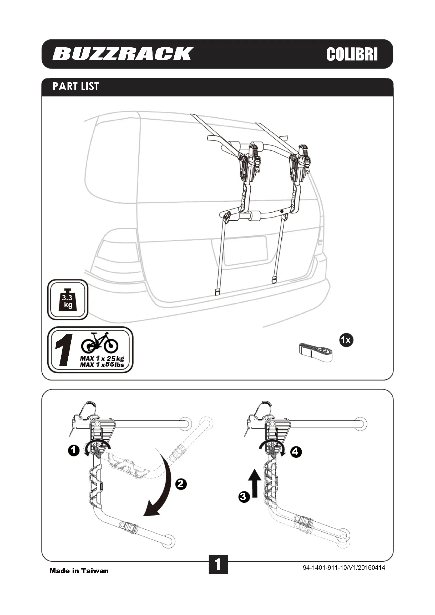 Colibri - Porte-vélo Buzz Rack - Notice d'utilisation et mode d'emploi gratuit