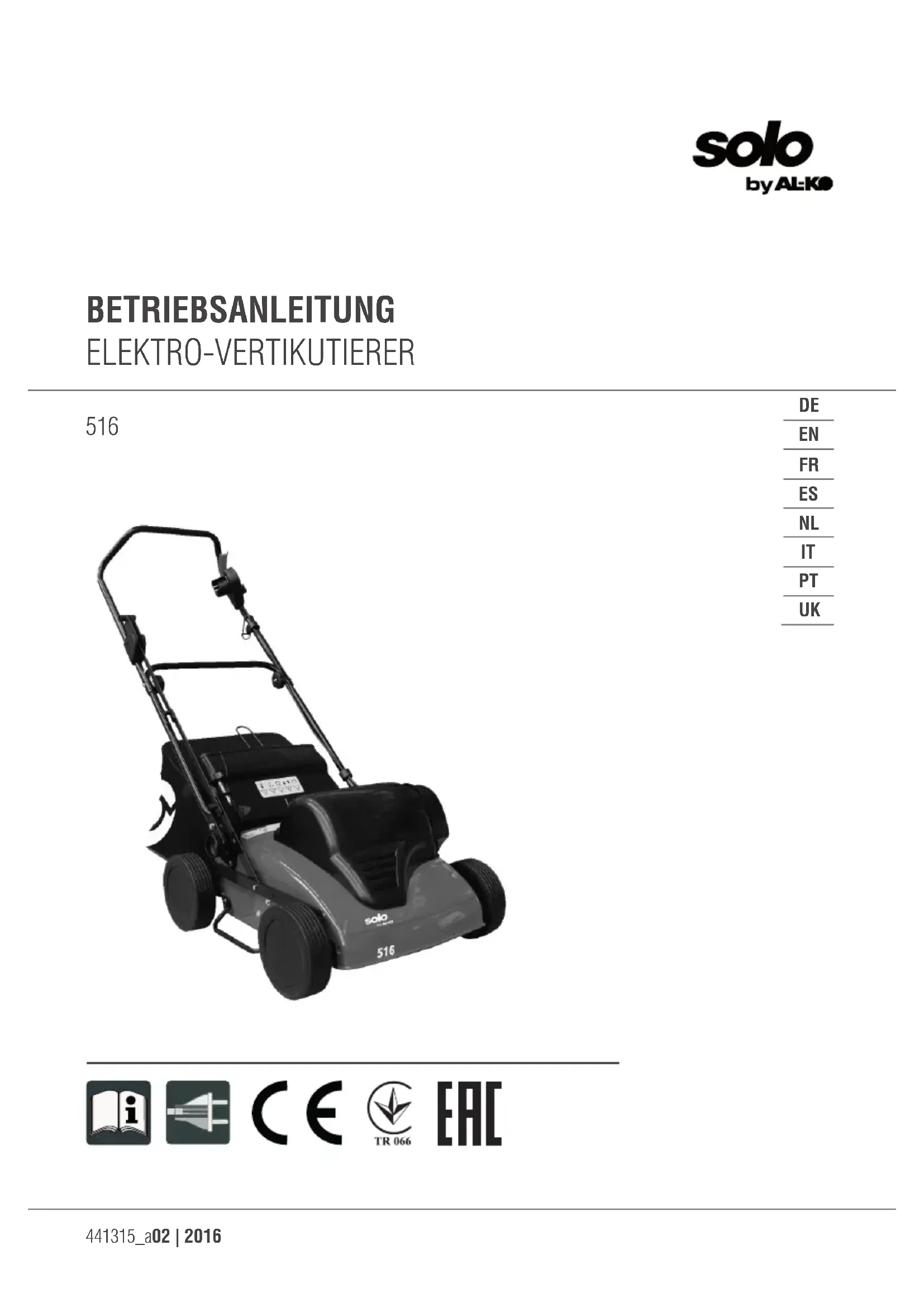 516 - Tondeuse à gazon SOLO - Notice d'utilisation et mode d'emploi gratuit