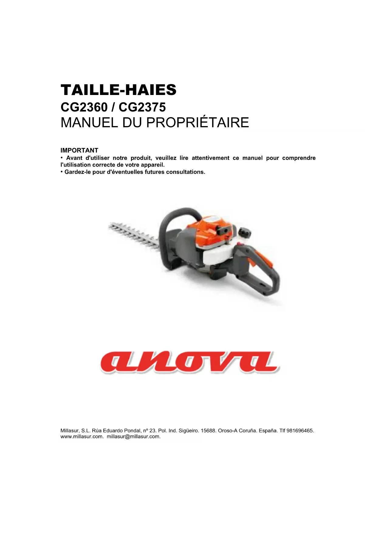 CG2360 - Taille-haies Anova - Notice d'utilisation et mode d'emploi gratuit