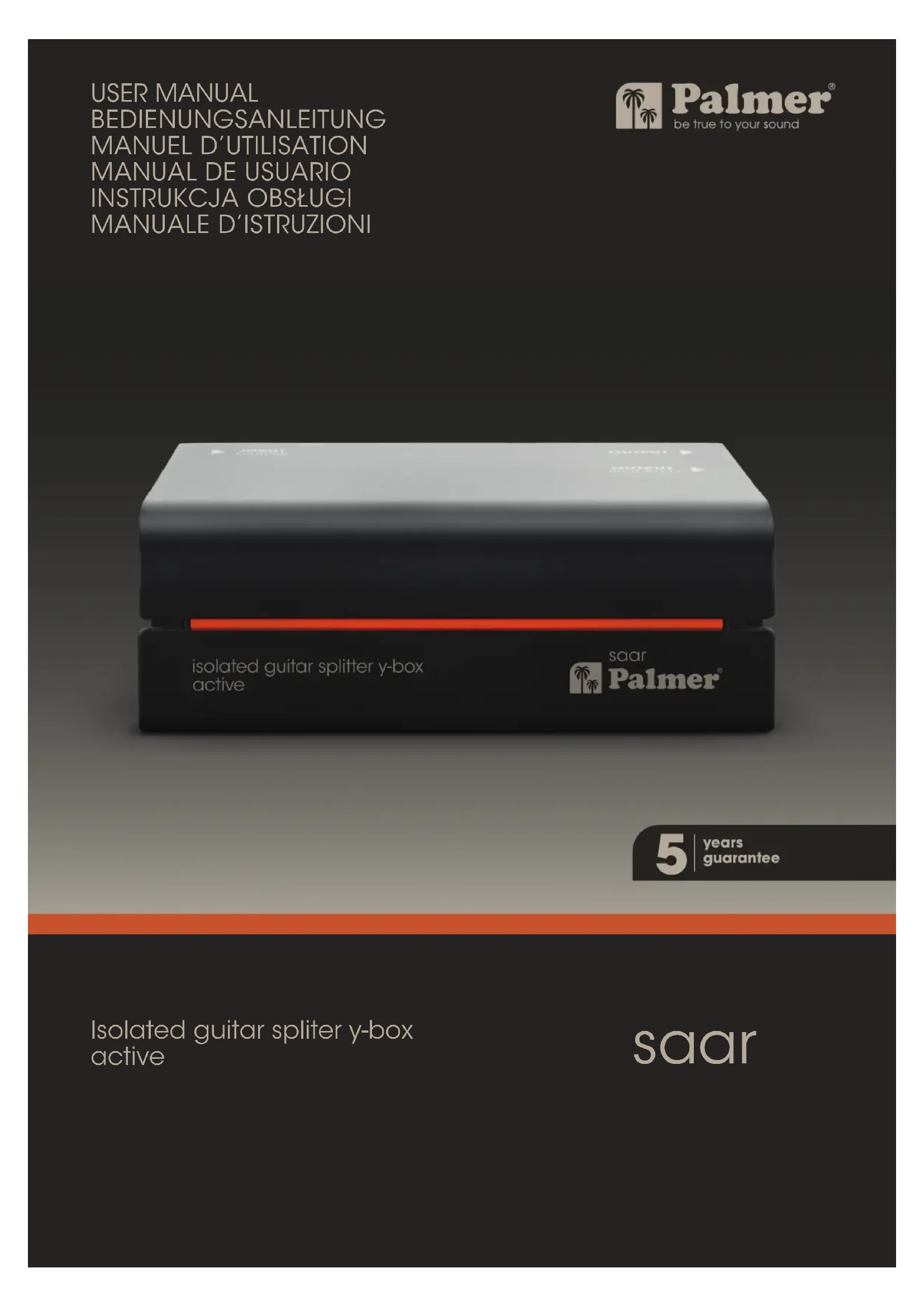Retirez le produit de son emballage, et mettez de côté tous les matériaux d’emballage. Assurez-vous que la livraison est complète et n'est pas endommagée; dans le cas contraire, informez votre partenaire commercial aussitôt après l’achat. Contenu du carton: ▶ 1x splitter actif isolé (Y-Box) pour guitare saar ▶ Fiche produit ▶ Étiquette de repérage ▶ Pieds en caoutchouc INTRODUCTION Le splitter pour guitare saar possède la même fonction de base qu'un câble en Y: il répartit un signal de guitare en deux, mais en évitant les inconvénients habituels comme la chute de niveau électrique et l'apparition de boucles de masse (ronflette). Grâce à l'électronique active et au transformateur d'isolation, toute influence mutuelle des entrées d'amplificateur est exclue.33
