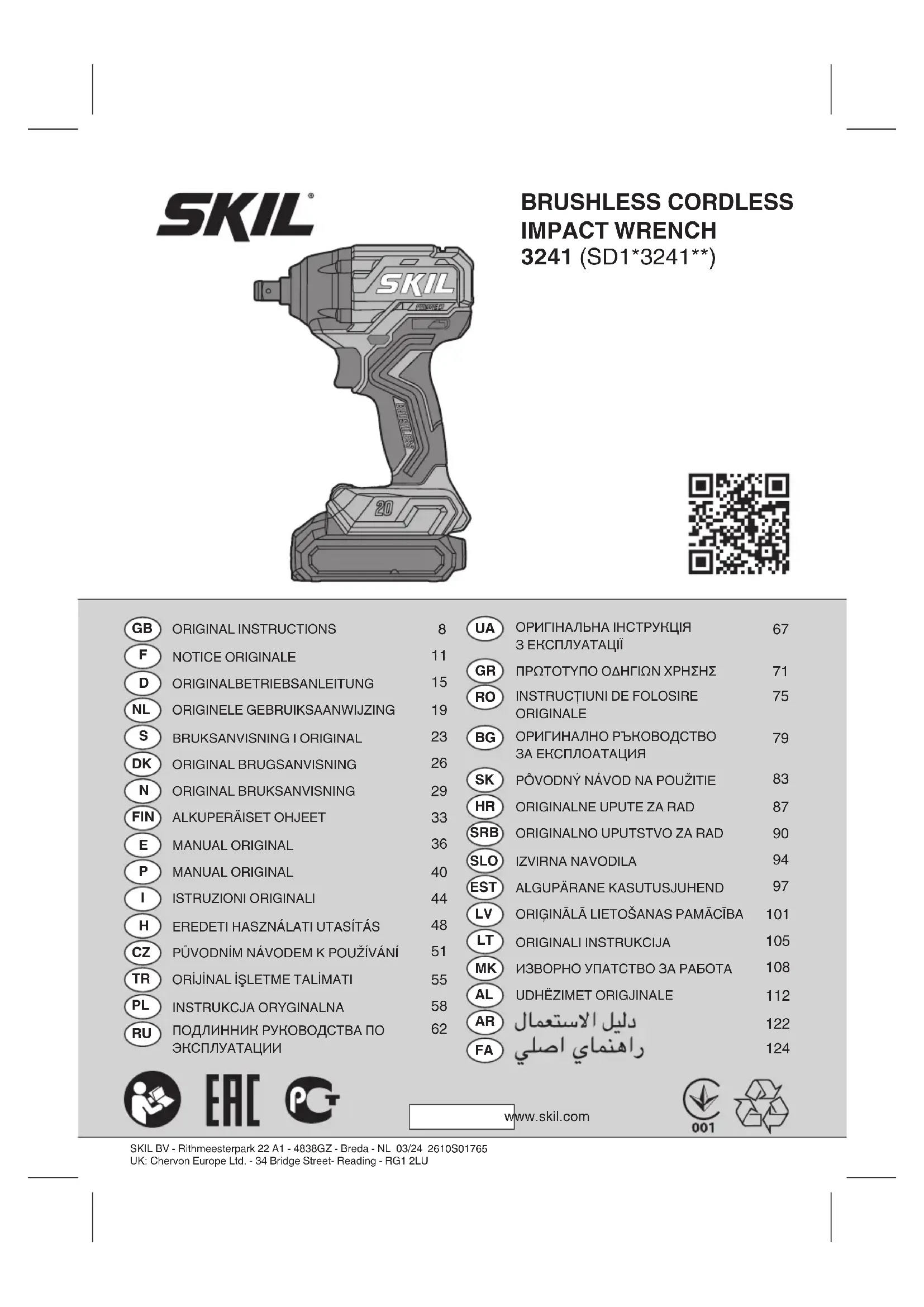 Téléchargez la notice de votre Visseuse au format PDF gratuitement ! Retrouvez votre notice 3241 CA - SKIL et reprennez votre appareil électronique en main. Sur cette page sont publiés tous les documents nécessaires à l'utilisation de votre appareil 3241 CA de la marque SKIL.