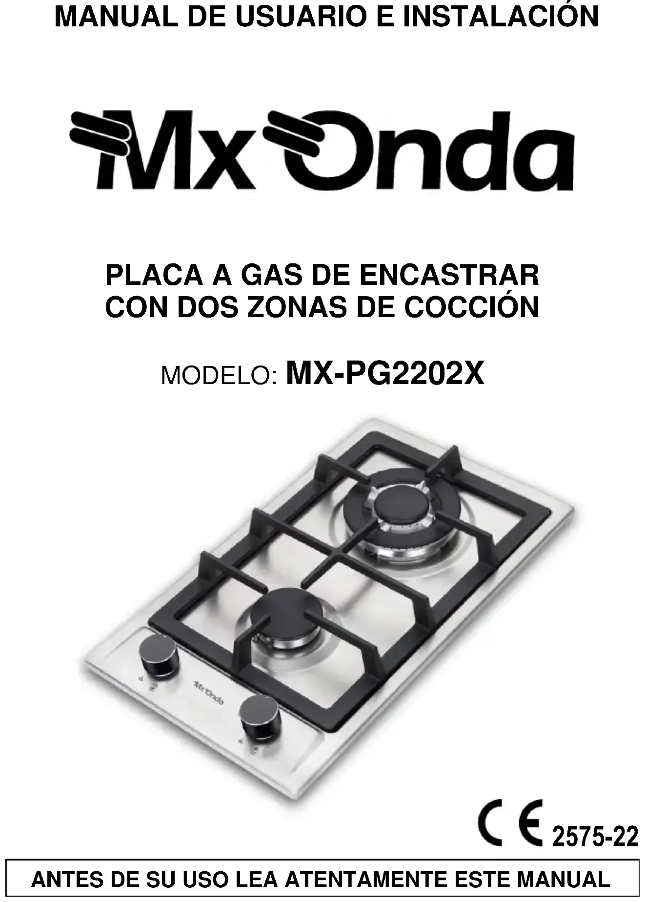 Ce produit est conforme à la directive européenne RoHS (2011/65 / UE), sur la limitation de l'utilisation de certaines substances dangereuses dans les équipements électriques et électroniques. INTRODUCTION MX ONDA vous remercie pour la déférence que vous avez eue lors de l’achat de ce produit. Le modèle de plaque à gaz MX-PG2202X a été fabriqué avec des matériaux de haute qualité. Son design le rend idéal pour tout type de cuisine. Entre autres, il présente les caractéristiques suivantes: