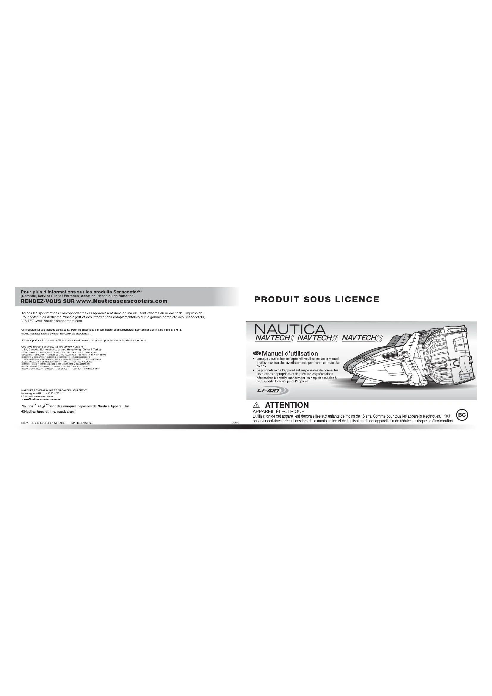 Ce produit n'est pas fabriqué par Nautica. Pour les besoins du consommateur, veuillez contacter Sport Dimension Inc. au 1-800-678-7873. Pour plus d’informations sur les produits Seascooter