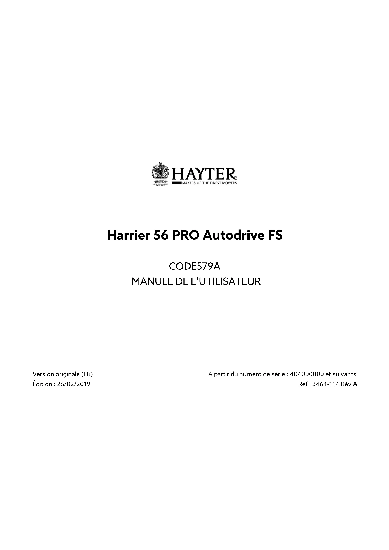 Retrouvez gratuitement la notice de l'appareil HARRIER 56 PRO Hayter au format PDF.