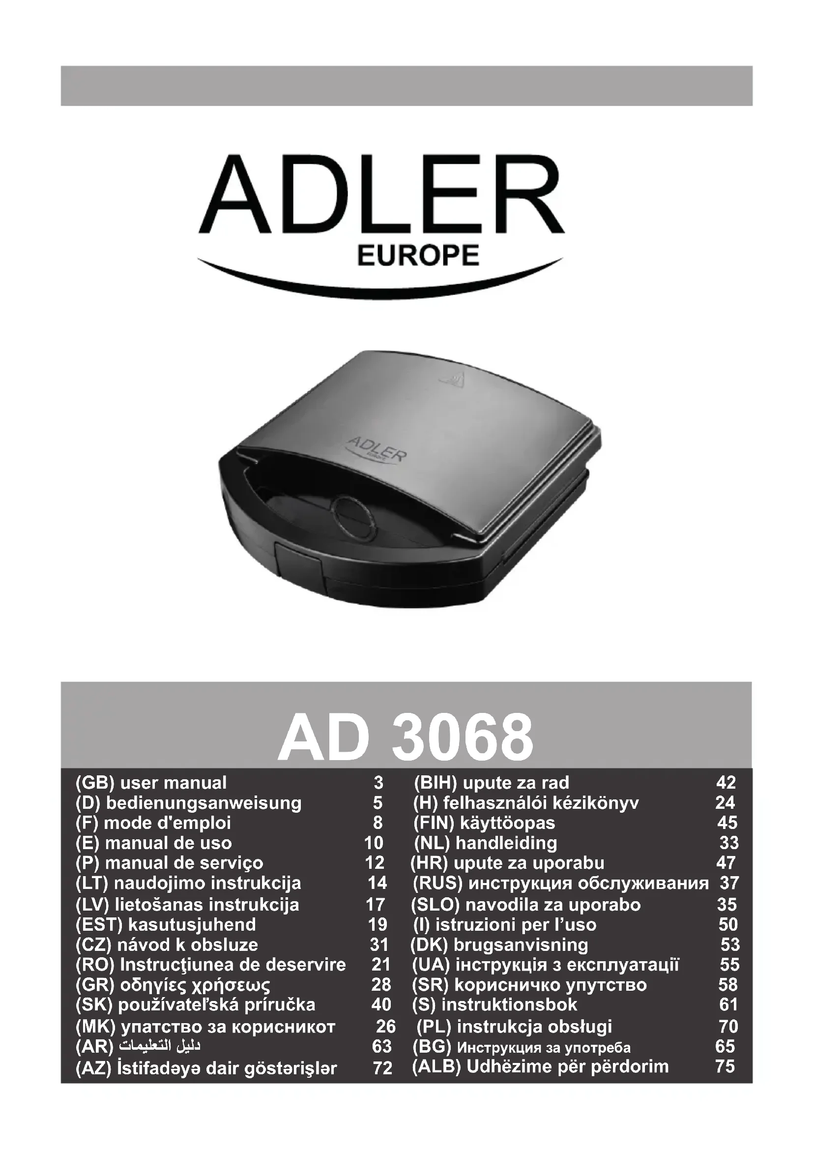 Retrouvez gratuitement la notice de l'appareil AD 3068 ADLER au format PDF.