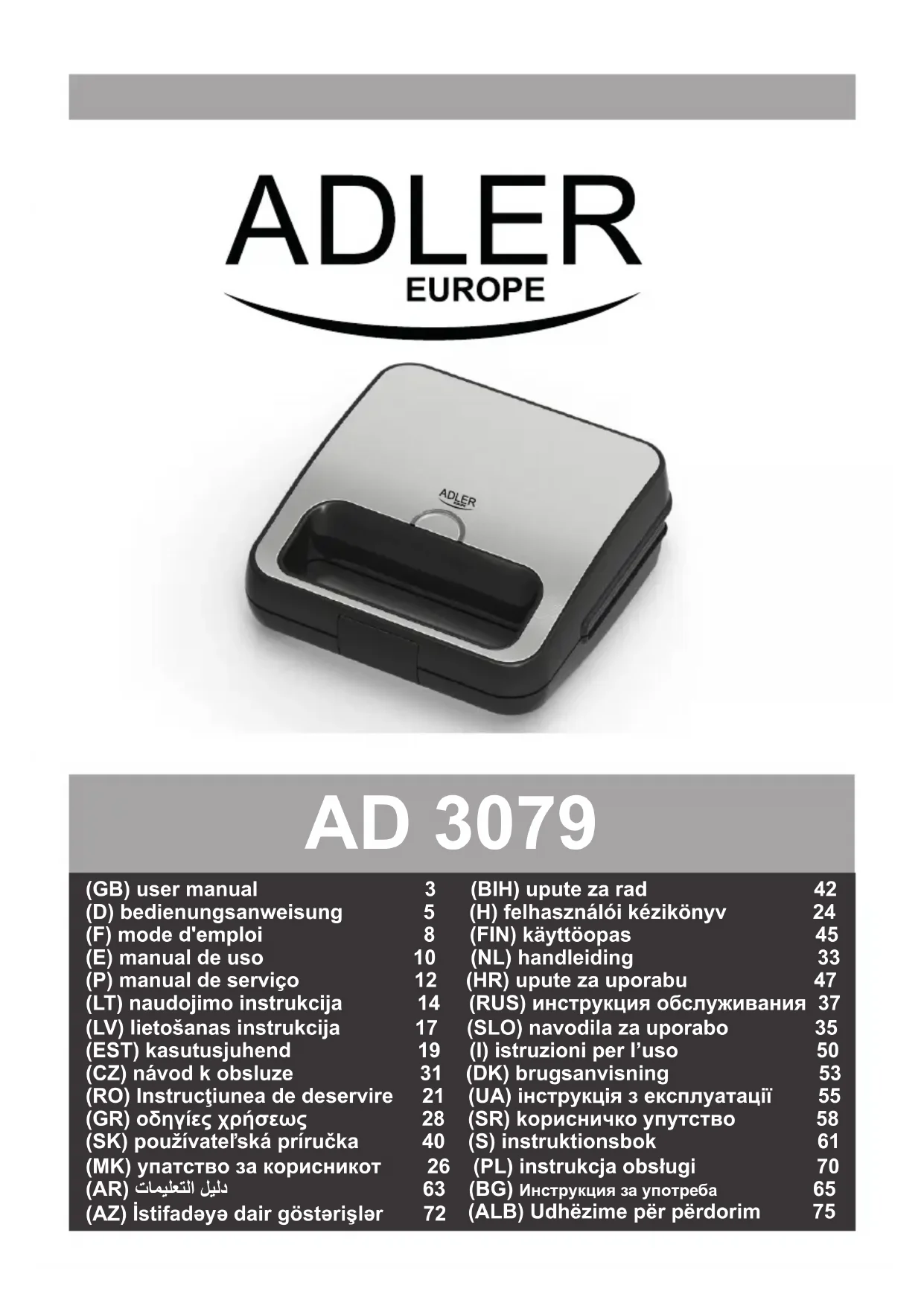 Retrouvez gratuitement la notice de l'appareil AD 3079 ADLER au format PDF.