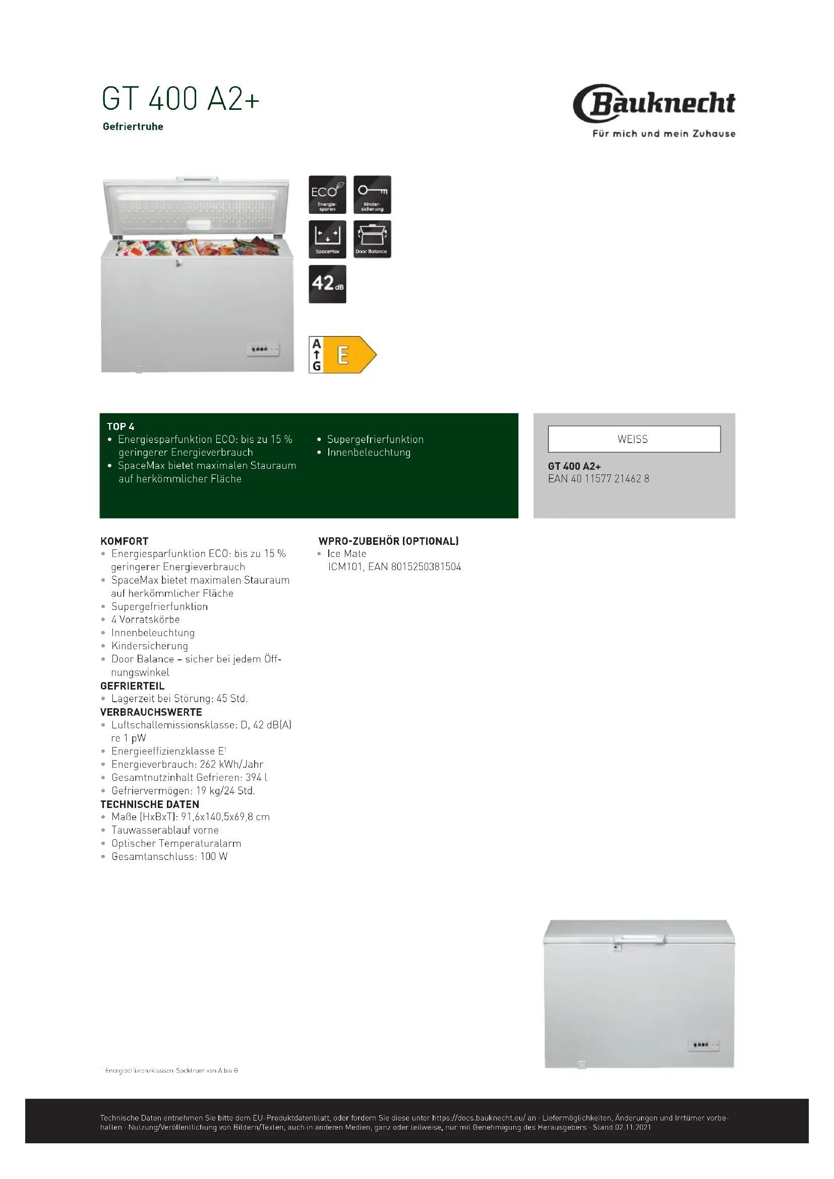 GT 400 A2+ - Congélateur BAUKNECHT - Notice d'utilisation et mode d'emploi gratuit
