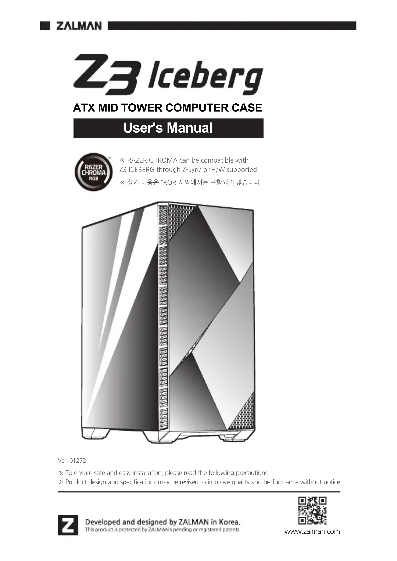 Retrouvez gratuitement la notice de l'appareil Z3 Iceberg ZALMAN au format PDF.