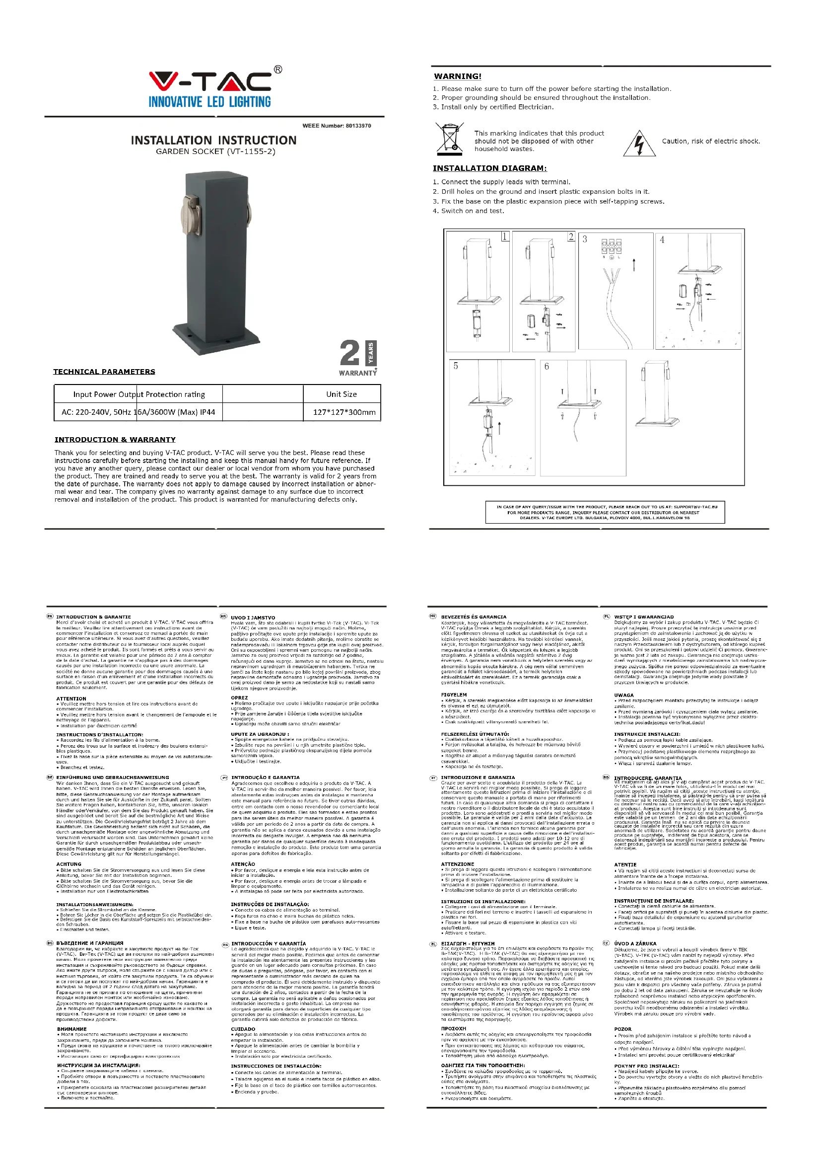 Retrouvez gratuitement la notice de l'appareil VT-1155-1 V-TAC au format PDF.