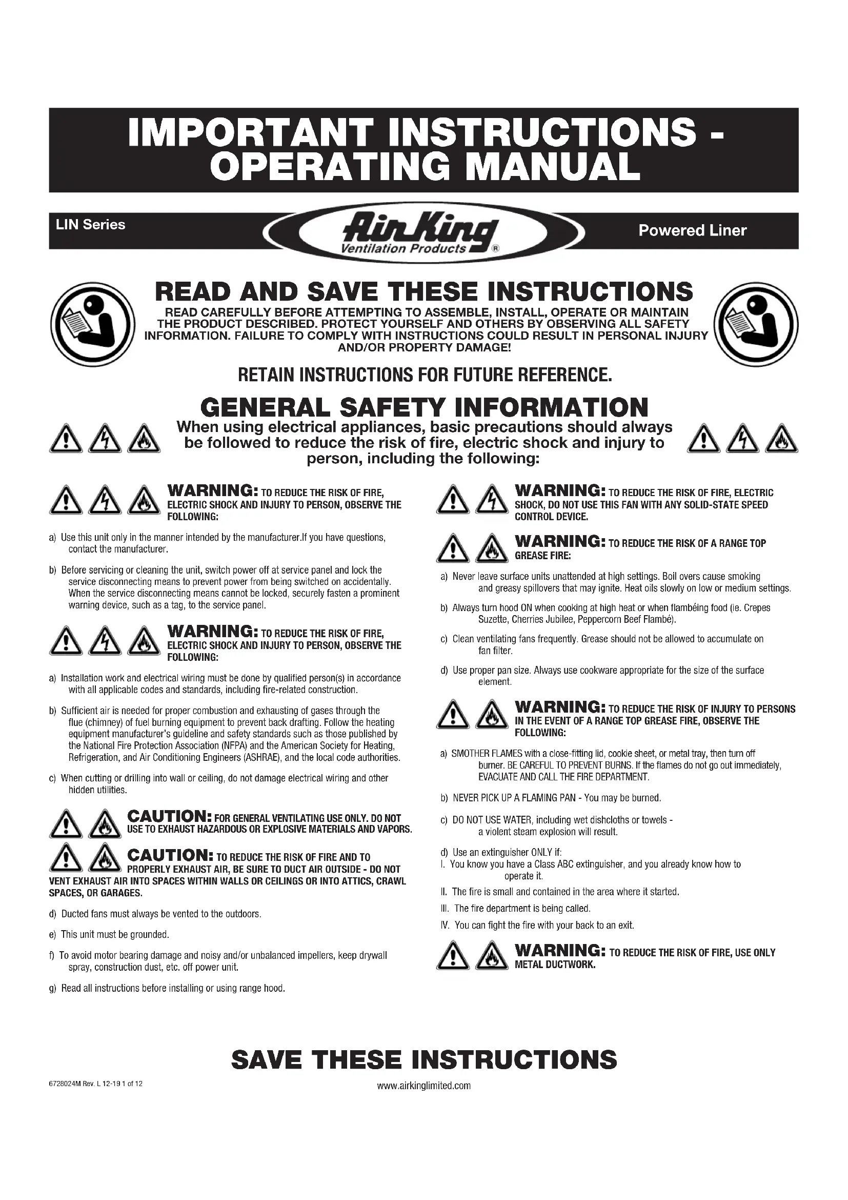 LIN34md-600 - Hotte Air King - Notice d'utilisation et mode d'emploi gratuit