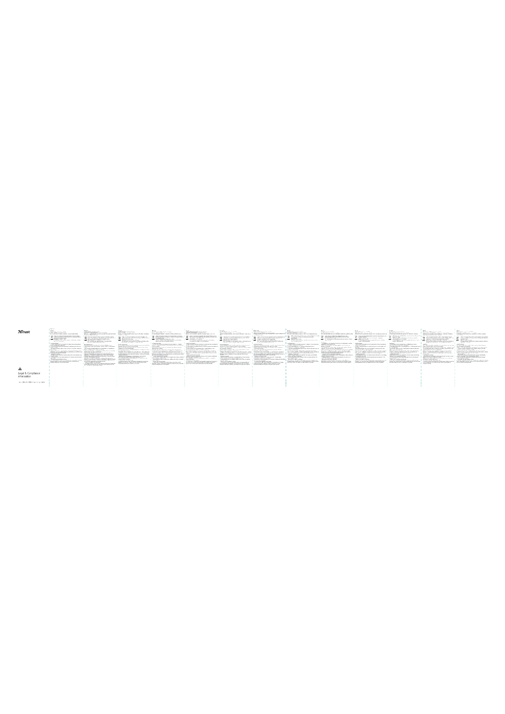 - En ningún caso, el fabricante se responsabilizará de ningún daño importante o imprevisto, lo que incluye cualquier pérdida de los beneficios del negocio o cualquier daño comercial que se ocasione del uso de este producto. Français Support technique : www.trust.com/23570 Sécurité et fiabilité : www.trust.com/safety Ne pas ouvrir/réparer l’appareil et ne pas l’exposer à l’humidité, à des liquides, au froid ou à la chaleur. WEEE : Ne jetez pas le produit avec les ordures ménagères. Afin d'éviter toute pollution de l'environnement, le produit doit être éliminé dans un centre de recyclage. Applicable uniquement en UE et en Turquie CE: Trust déclare que cet appareil est conforme aux Directives telles qu’énumérées dans la Section 2 du présent document. Conditions de garantie :