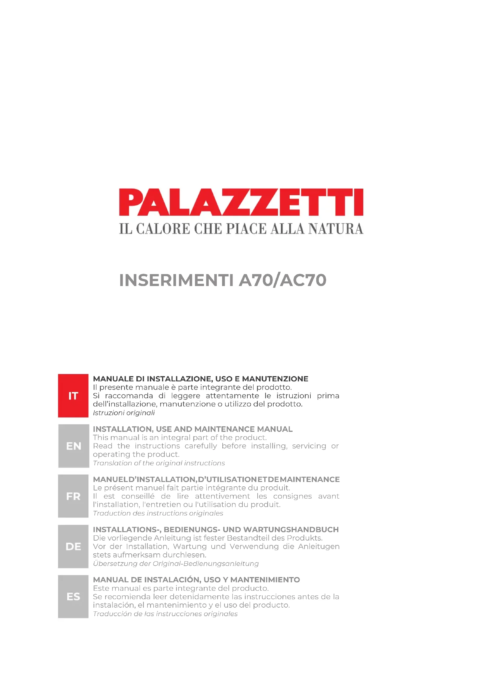 Retrouvez gratuitement la notice de l'appareil Ecofire for building in A70 air Palazzetti au format PDF.