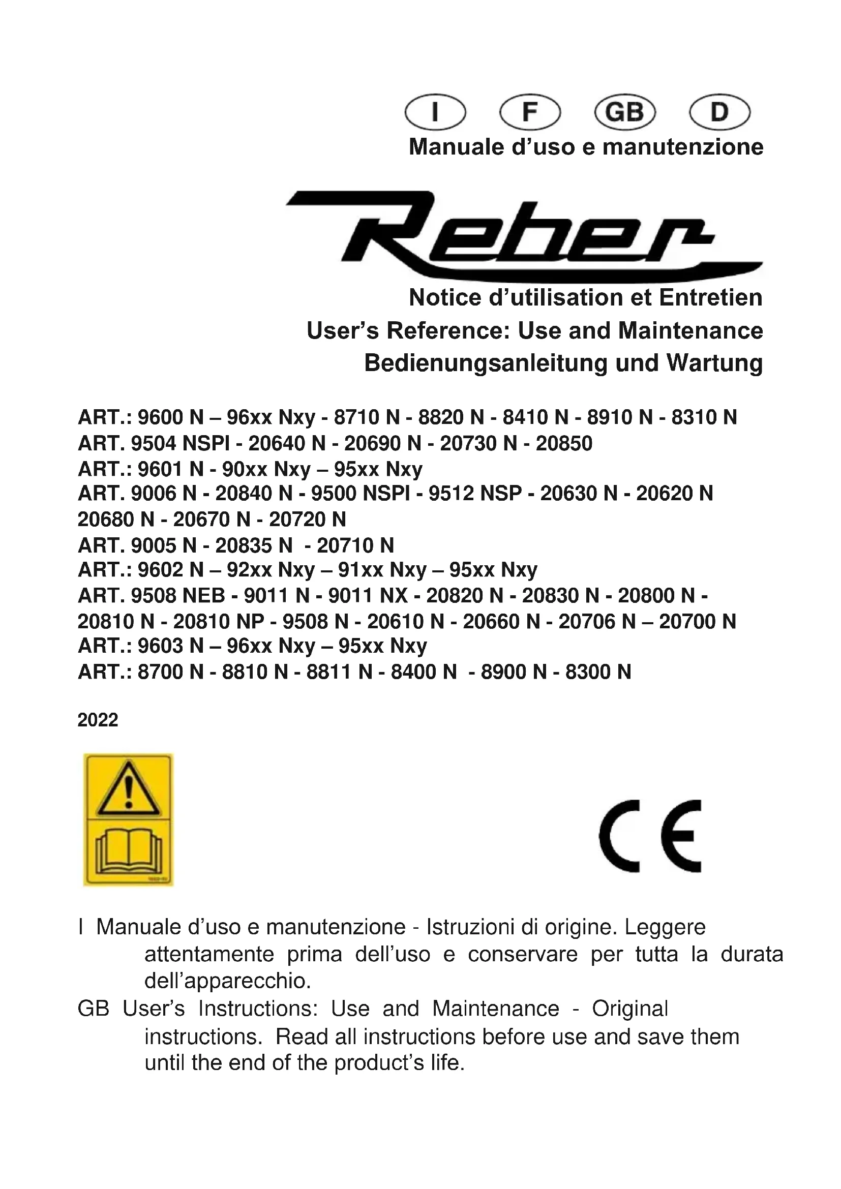 Retrouvez gratuitement la notice de l'appareil 9005 N Reber au format PDF.