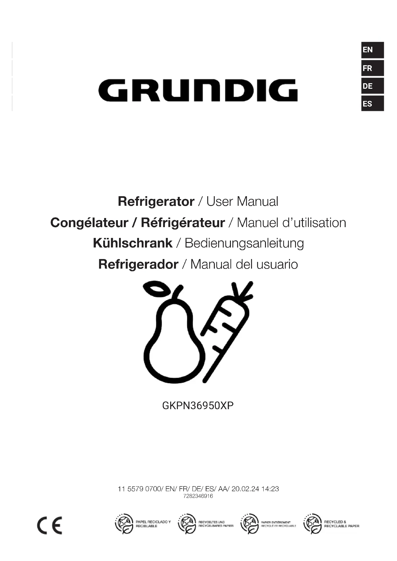 GKPN 36950 XP - Réfrigérateur GRUNDIG - Notice d'utilisation et mode d'emploi gratuit