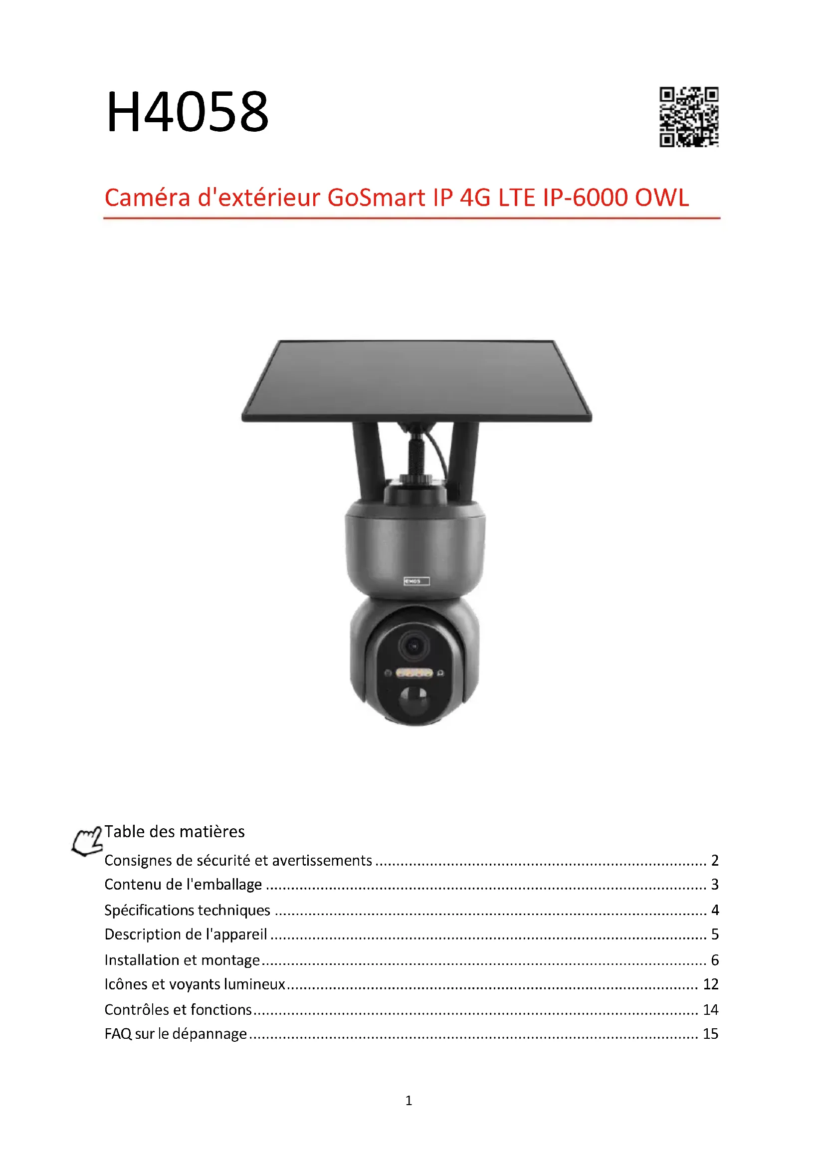 H4058 Caméra d'extérieur GoSmart IP 4G LTE IP-6000 OWL