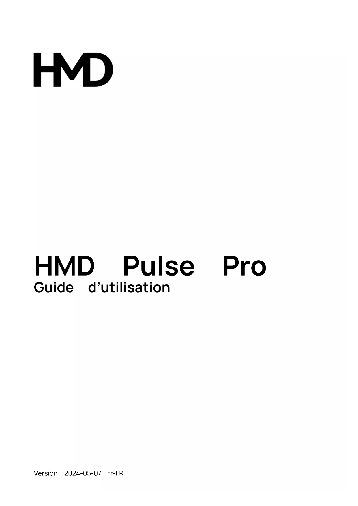 - HMD Pulse Pro Guide d’utilisation Version 2024-05-07 fr-FRHMD Pulse Pro Guide d’utilisation Sommaire 1 À propos de ce guide d’utilisation 5 2 Prise en main 6 Gardez votre téléphone à jour p. 6