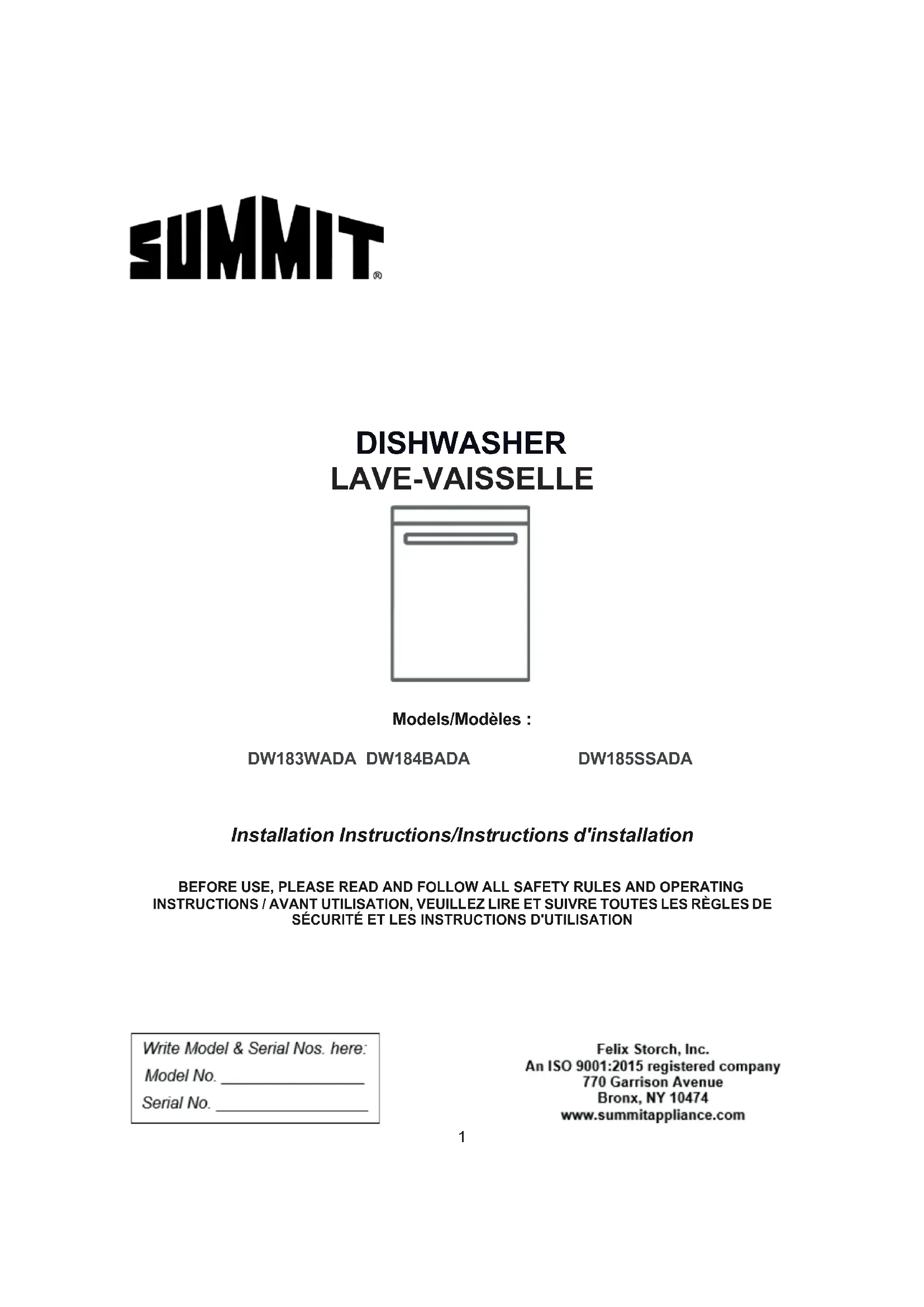 DW18SS4ADA - Lave-vaisselle Summit - Notice d'utilisation et mode d'emploi gratuit