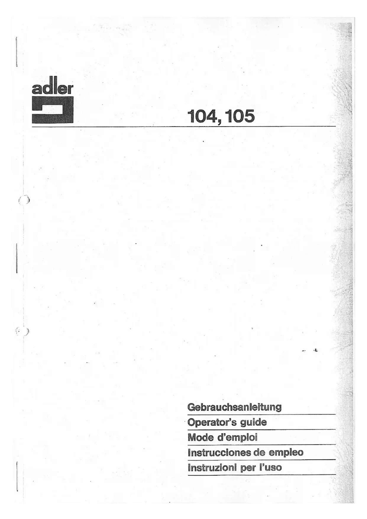 Retrouvez gratuitement la notice de l'appareil 105 Dürkopp Adler au format PDF.
