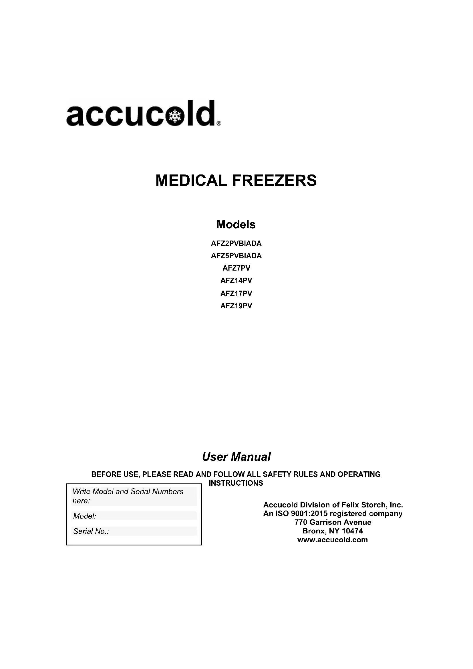 AFZ2PVBIADA - Congélateur Accucold - Notice d'utilisation et mode d'emploi gratuit