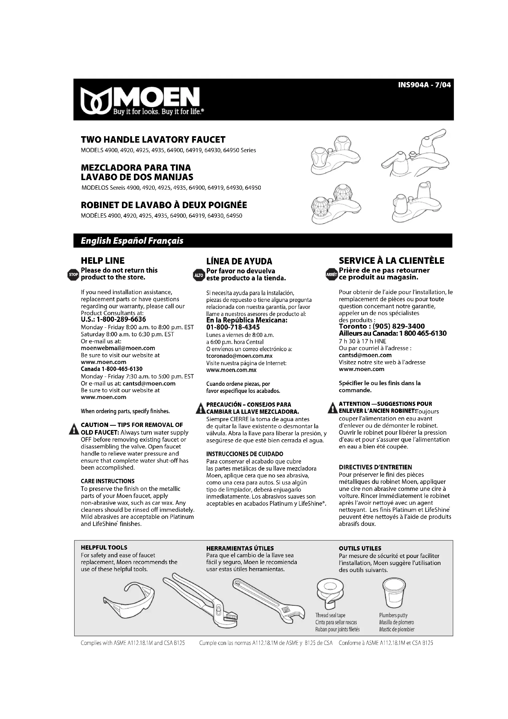 Chateau 64900 - Robinet Moen - Notice d'utilisation et mode d'emploi gratuit