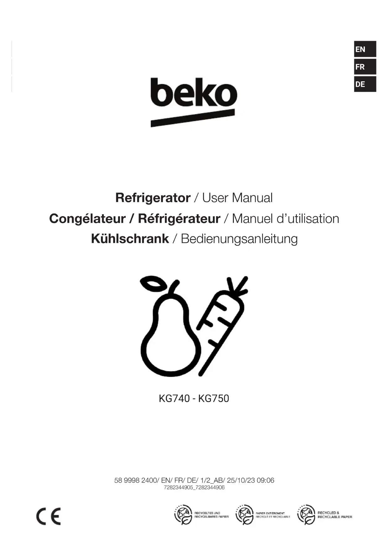 KG750 - Réfrigérateur BEKO - Notice d'utilisation et mode d'emploi gratuit