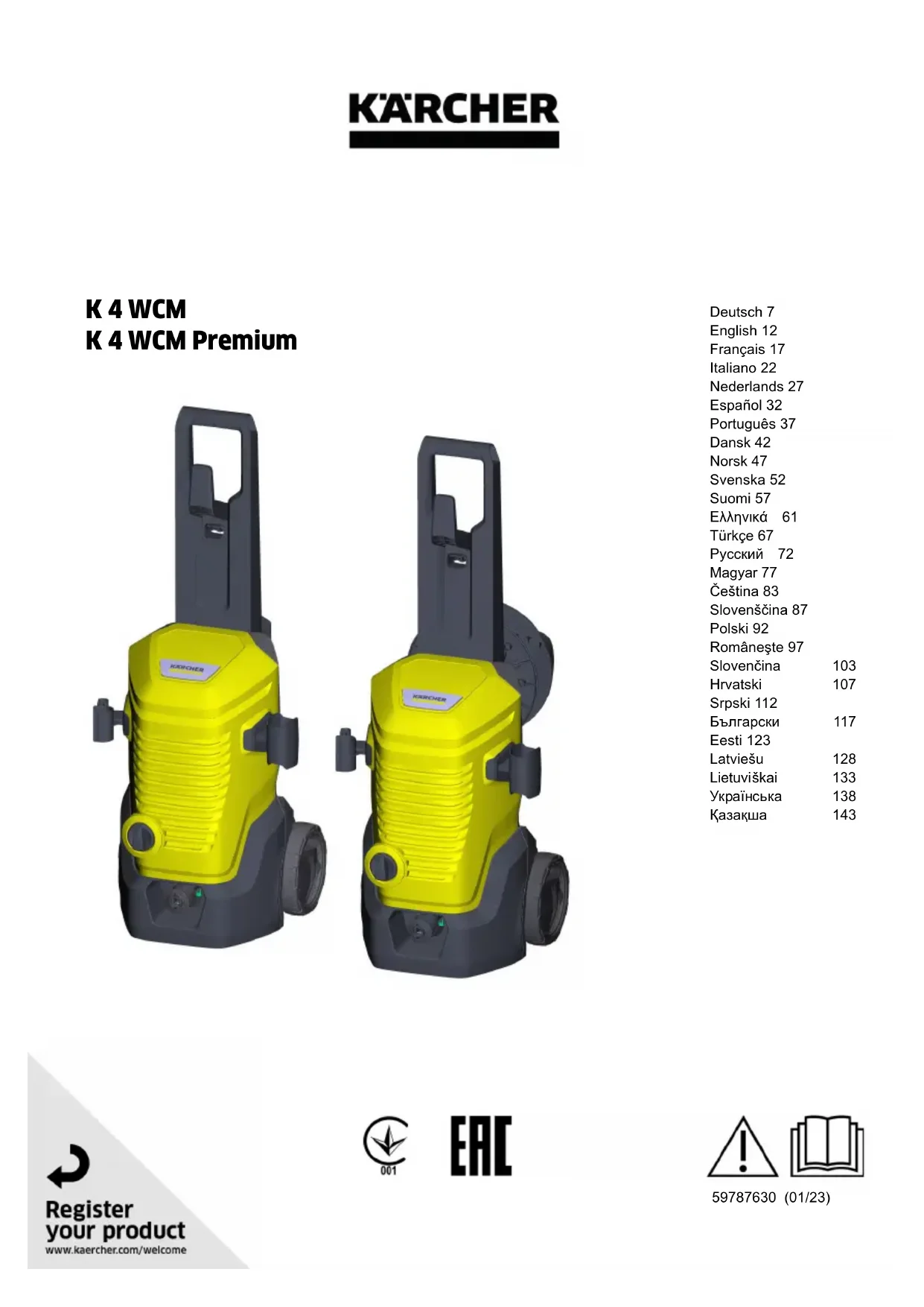 4 WCM Premium - Nettoyeur haute pression Kärcher - Notice d'utilisation et mode d'emploi gratuit