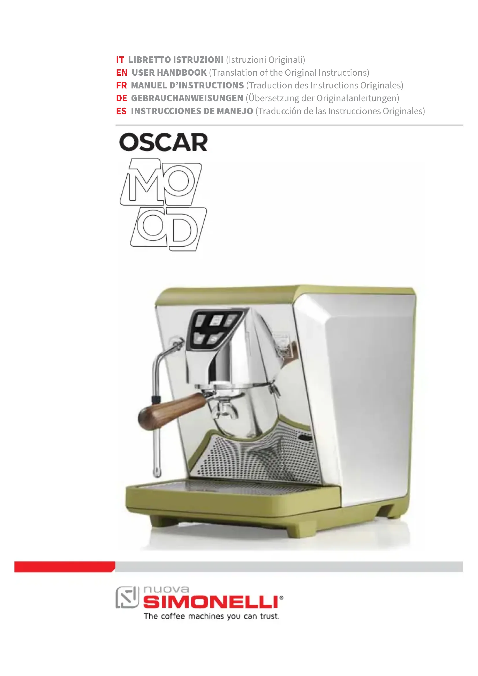 Oscar Mood - Machine à café NUOVA SIMONELLI - Notice d'utilisation et mode d'emploi gratuit
