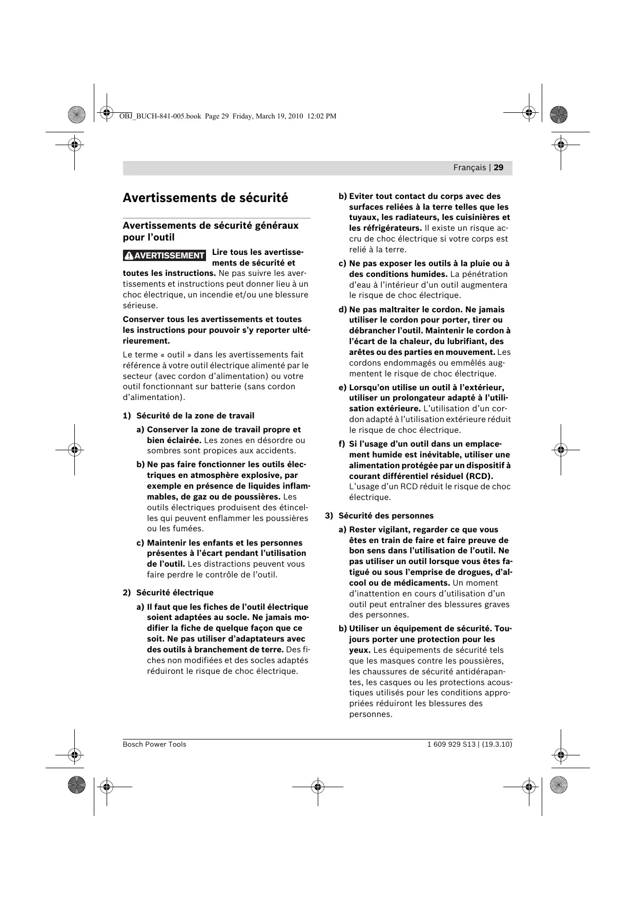 a) Faire entretenir l'outil par un réparateur qualifié utilisant uniquement des pièces de rechange identiques. Cela assurera que la sécurité de l'outil est maintenue. 1 609 929 813 | (19.3.10) Bosch Power Tools
