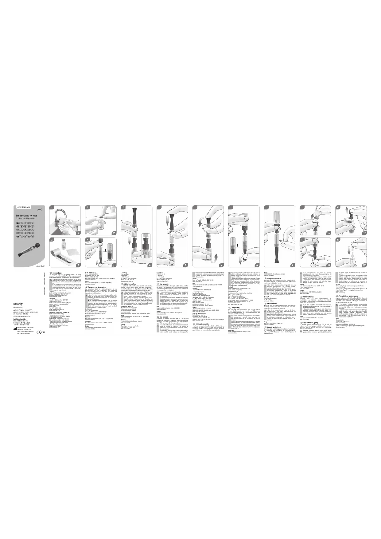 Utilisation prévue Le système de cartouche Accu‑Chek Spirit de 3,15 ml est un réservoir d’insuline destiné à être utilisé avec des pompes à insuline Accu‑Chek et des dispositifs de perfusion Accu‑Chek correspondants et équipés d’un embout Luer‑lock standard.• Lisez attentivement ces instructions d’utilisation avant d’utiliser le système de cartouche Accu‑Chek Spirit de 3,15 ml. Lisez également les instructions d’utilisation de la pompe à insuline et du dispositif de perfusion.• Le système de cartouche contient de petites pièces. Il existe un risque d’étouement en cas d’ingestion des petites pièces. Conservez tous les composants du système de cartouche hors de la portée des personnes qui ne sont pas conscientes du danger et sont susceptibles d’ingérer de petites pièces, comme les enfants en bas âge.Distribué en France par : Roche Diabetes Care France SAS 2, Avenue du Vercors, B.P. 59 38240 Meylan Cedex, Francewww.accu‑chek.fr Service après‑vente : contactez votre prestataire de serviceSuisse Service clientèle Accu‑Chek 0800 11 00 11 appel gratuit www.accu‑chek.chBelgique Tél: 0800‑93626 (Roche Diabetes Service)www.accu‑chek.beCanadaSupport pour la pompe Accu‑Chek : ‑800‑688‑4578 (sans frais)www.accu‑chek.caLuxembourgPROPHAC S.à r.l.5, Rangwee ‑2412 HowaldB.P. 2063 L‑1020 LuxembourgPhone +352 482 482 500diagnostics@prophac.lu