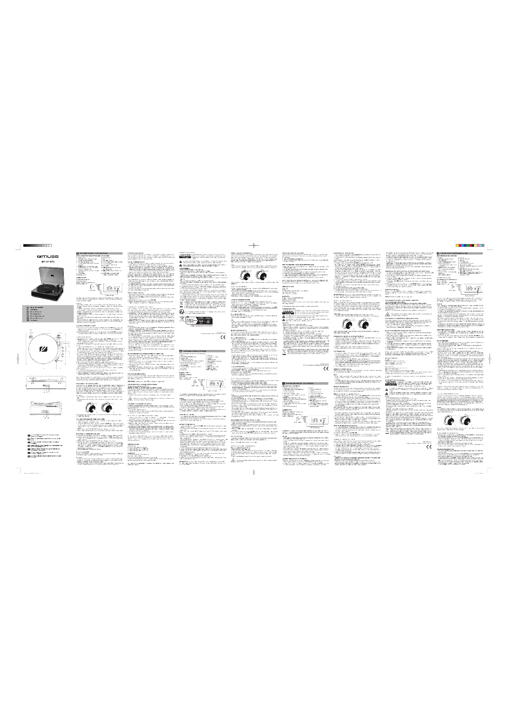 du système de tourne-disque. Par la présente, NEW ONE S.A.S déclare que l'appareil "MUSE MT-107 BTO" est conforme aux exigences essentielles et autres dispositions pertinentes de la directive 2014/53/EU. La déclaration de conformité peut être consultée sur le site www.muse-europe.com