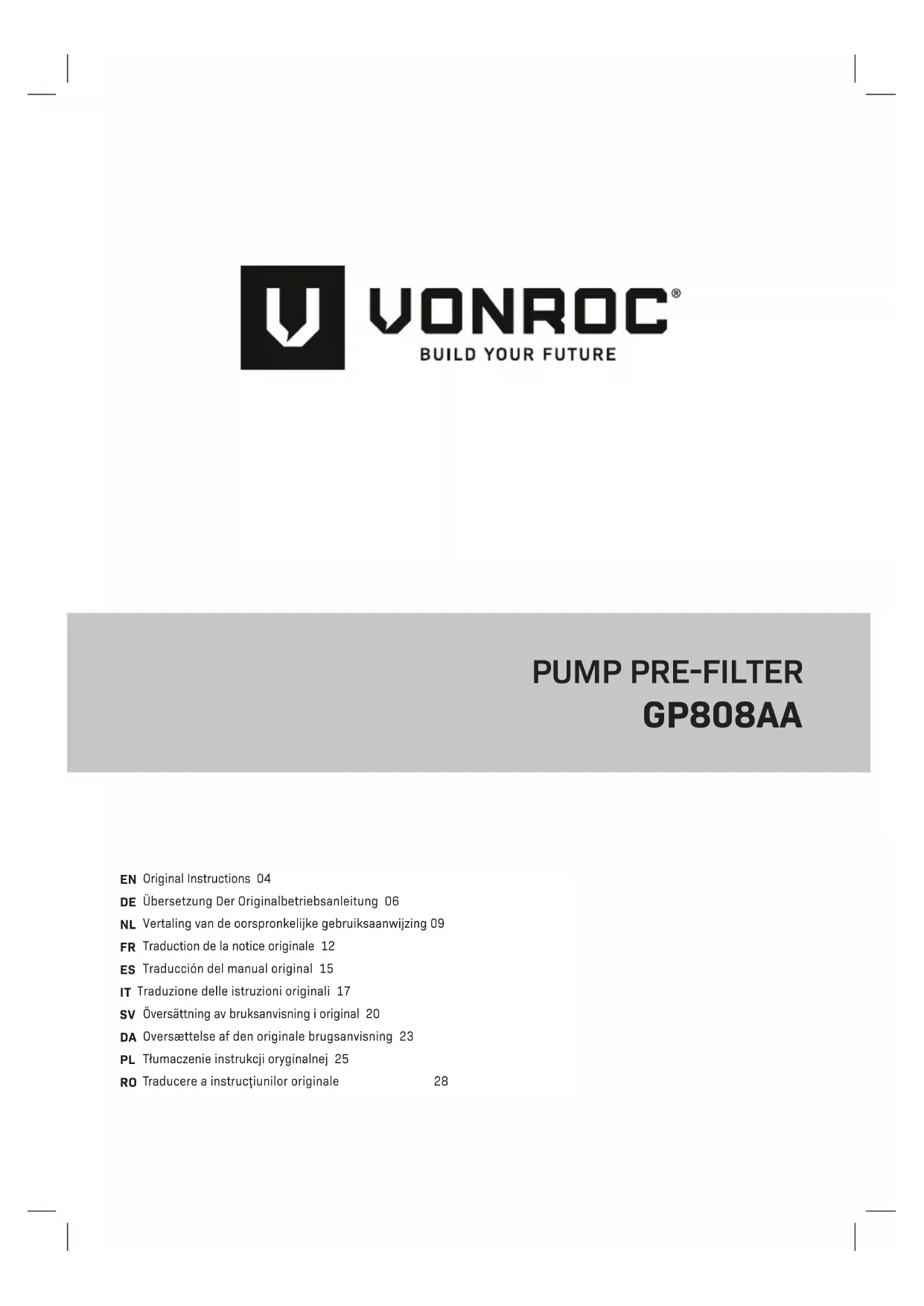 GP808AA - Pompe à eau Vonroc - Notice d'utilisation et mode d'emploi gratuit