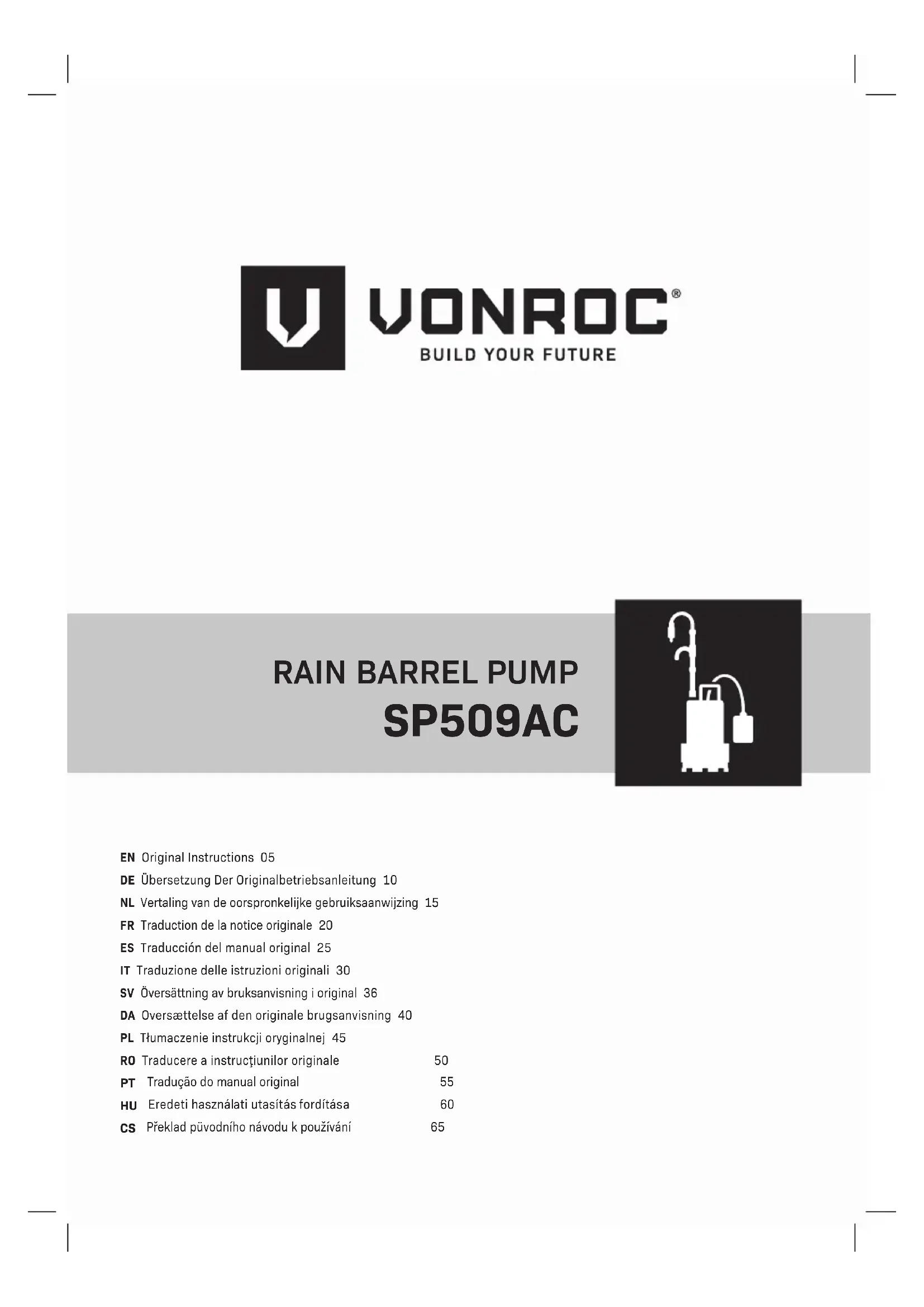 SP509AC - Pompe à eau Vonroc - Notice d'utilisation et mode d'emploi gratuit