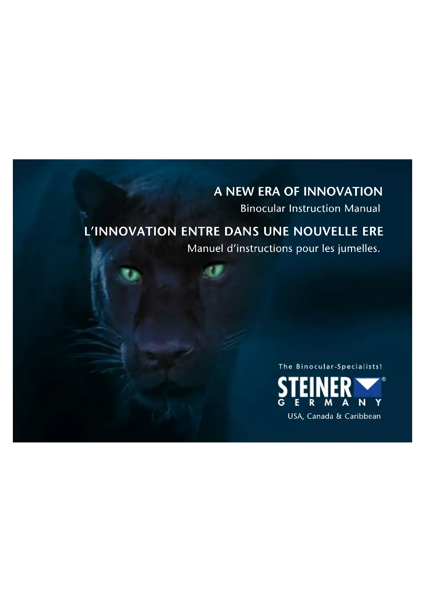 formule pour sortie oculaire: sortie oculaire= Odiamètre de lentille d’objectif grossissement45 remisage Lorsque non-utilisée, vos jumelles STEINER devraient être remisées dans un endroit frais et sec. Évitez de les remiser dans un endroit exposé à la lumière directe du soleil (ex : dans l’auto) ou avec des variations extrêmes de température. nettoyage Nettoyez vos jumelles en essuyant le revêtement caoutchouté avec un linge humide. Des taches tenaces peuvent nécessitées un savon doux et un chiffon trempé. Nettoyez vos lentilles seulement quand nécessaire et ne jamais utiliser de solutions de nettoyage à base d’acide. La protection nanor de vos jumelles xp repousse la poussière ou l’eau de vos lentilles. Simplement les rincer à l’eau ou essuyez délicatement les objectifs et les oculaires avec le tissus nettoyeur qui était dans votre boîte originale..46 Les jumelles STEINER-garantie de plaire: La confiance de nos consommateurs confirme la précision, la robust- esse et la fonctionnabilité de nos produits. La garantie limitée 10/30 ans est disponible partout au monde et commence à la livraison des jumelles le jour de l’achat