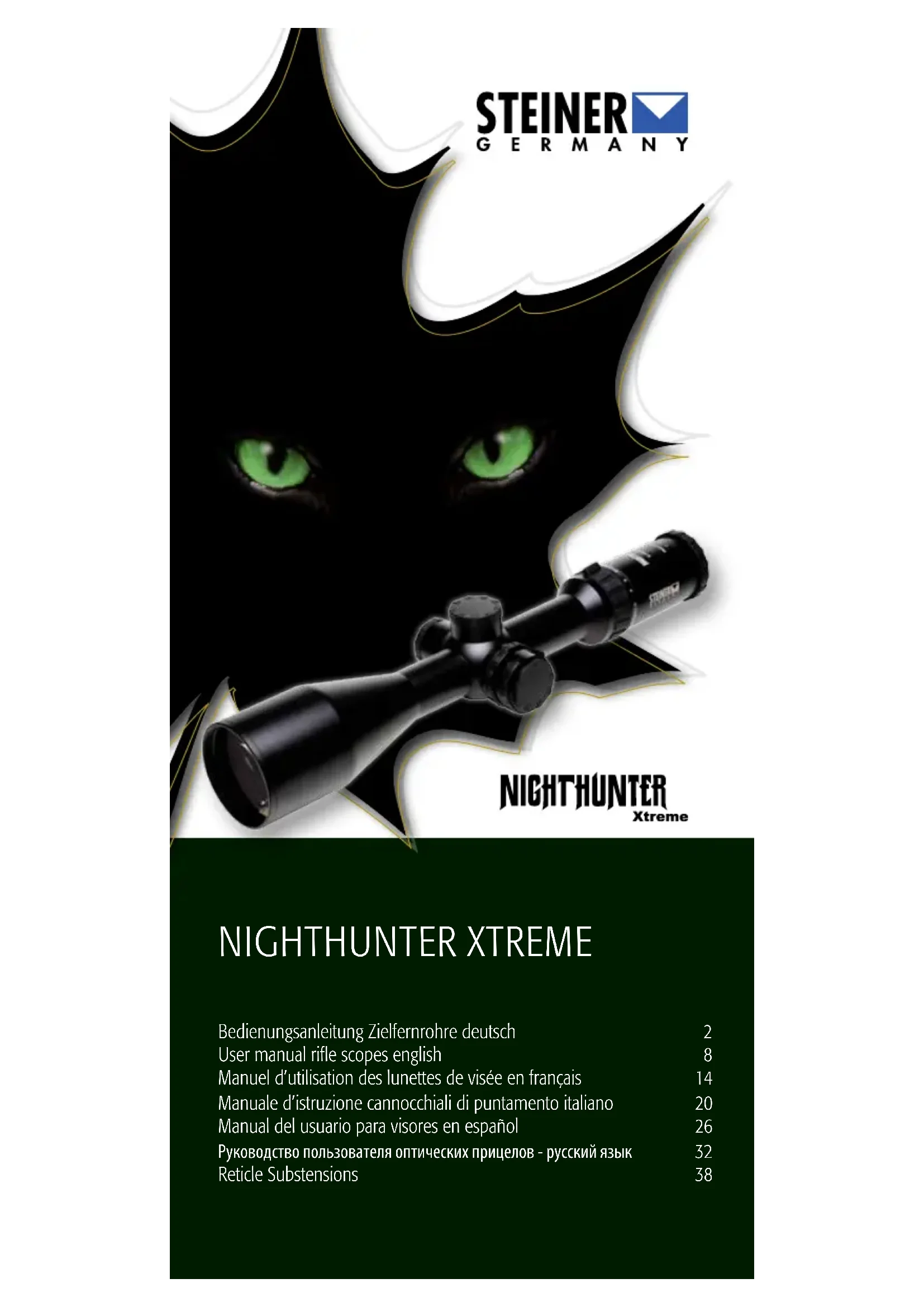 Retrouvez gratuitement la notice de l'appareil Nighthunter Xtreme 1.6-8x42 Steiner au format PDF.