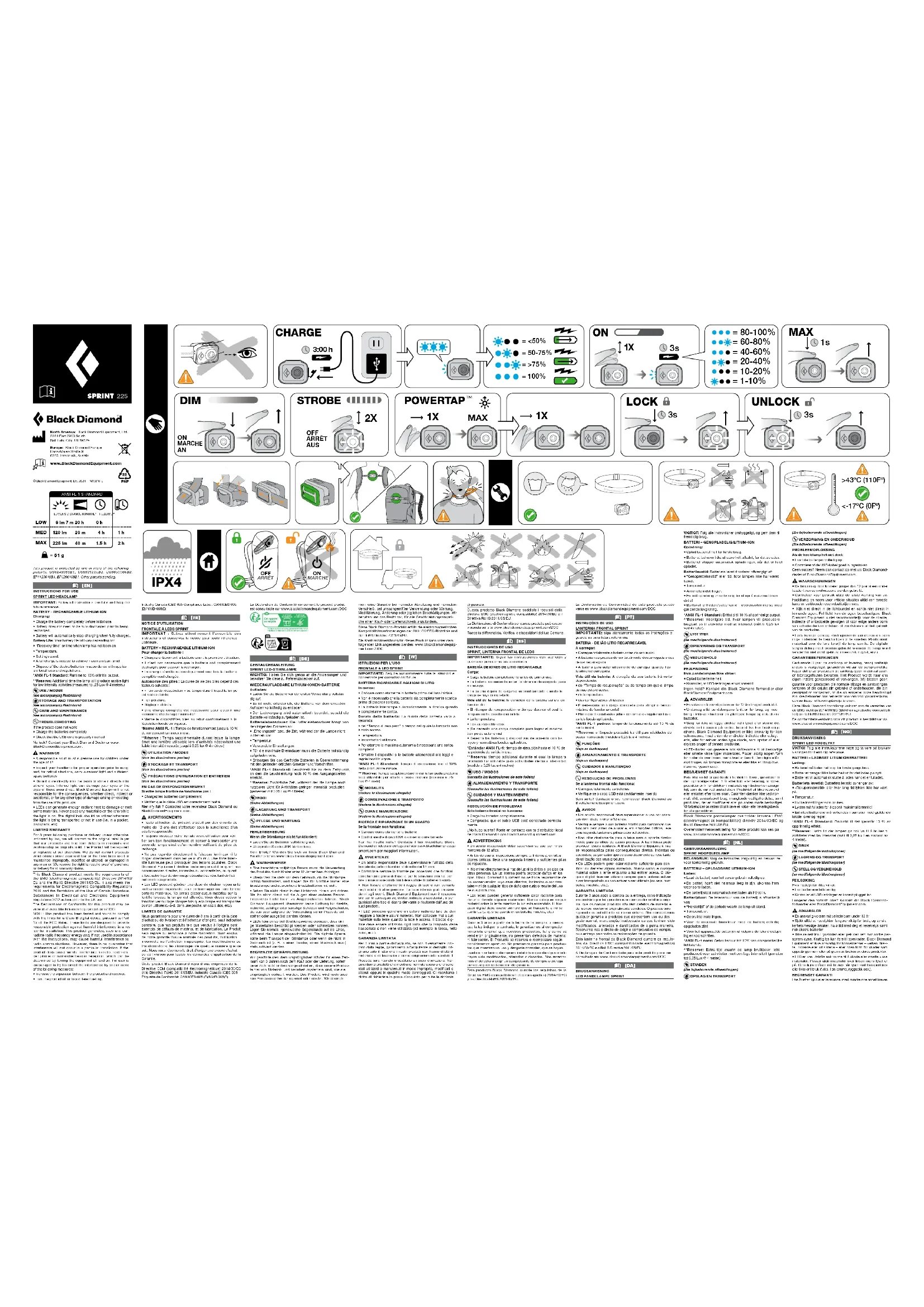 Sprint 225 - Lampe Black Diamond - Notice d'utilisation et mode d'emploi gratuit
