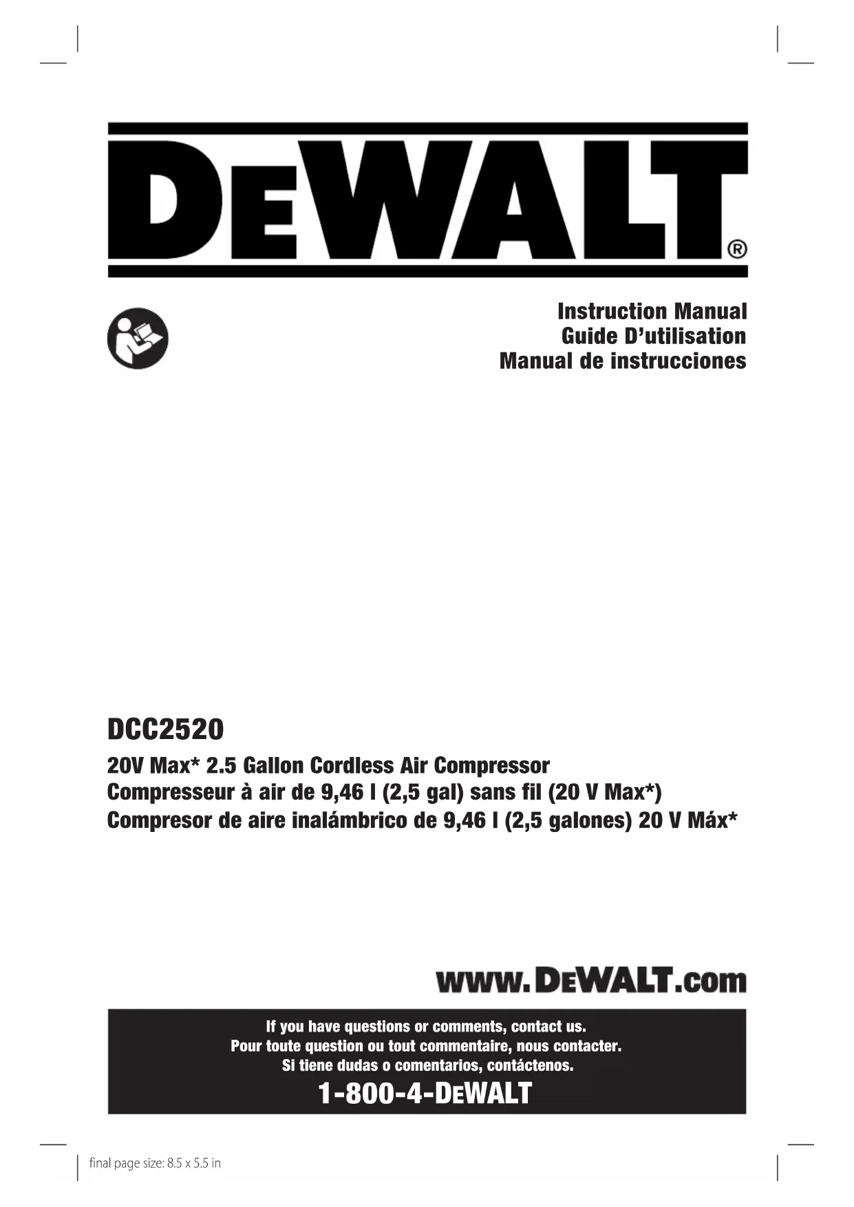 DCC2520 - Compresseur DEWALT - Notice d'utilisation et mode d'emploi gratuit