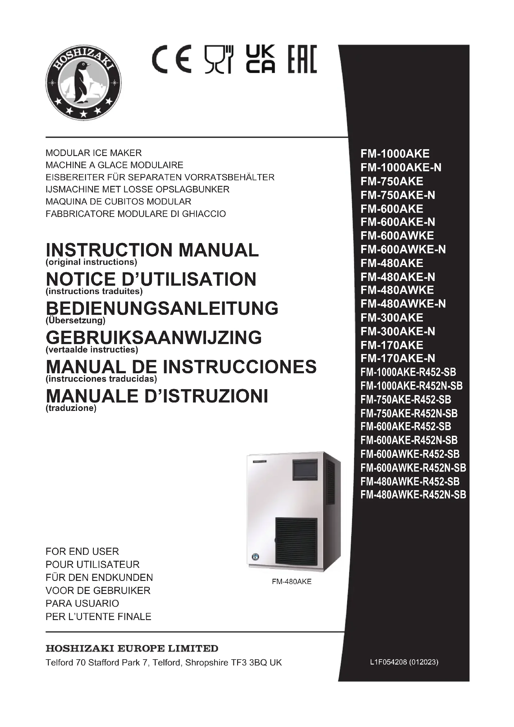 Retrouvez gratuitement la notice de l'appareil FM-170AKE-SB Hoshizaki au format PDF.