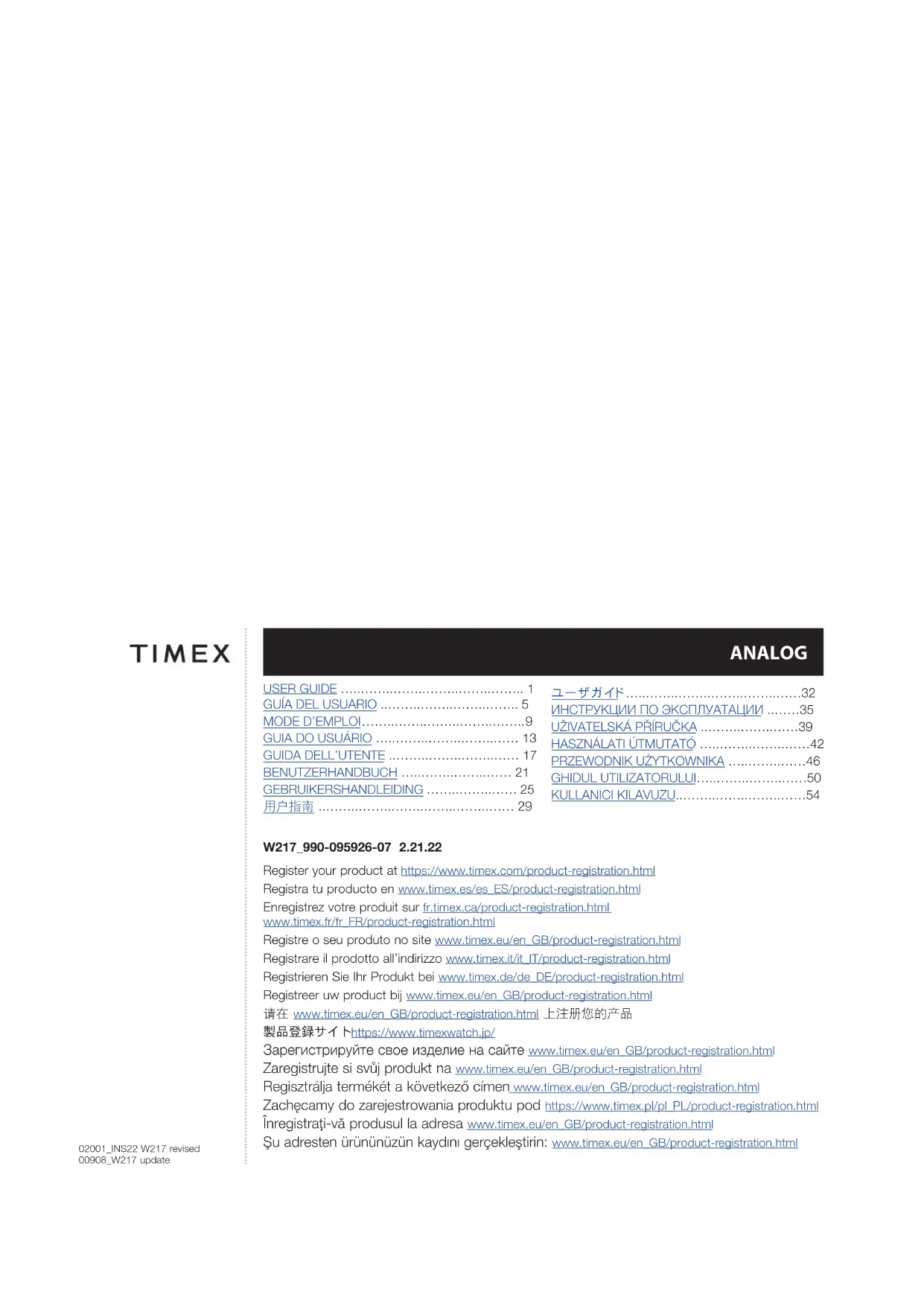 Retrouvez gratuitement la notice de l'appareil Analog TIMEX au format PDF.