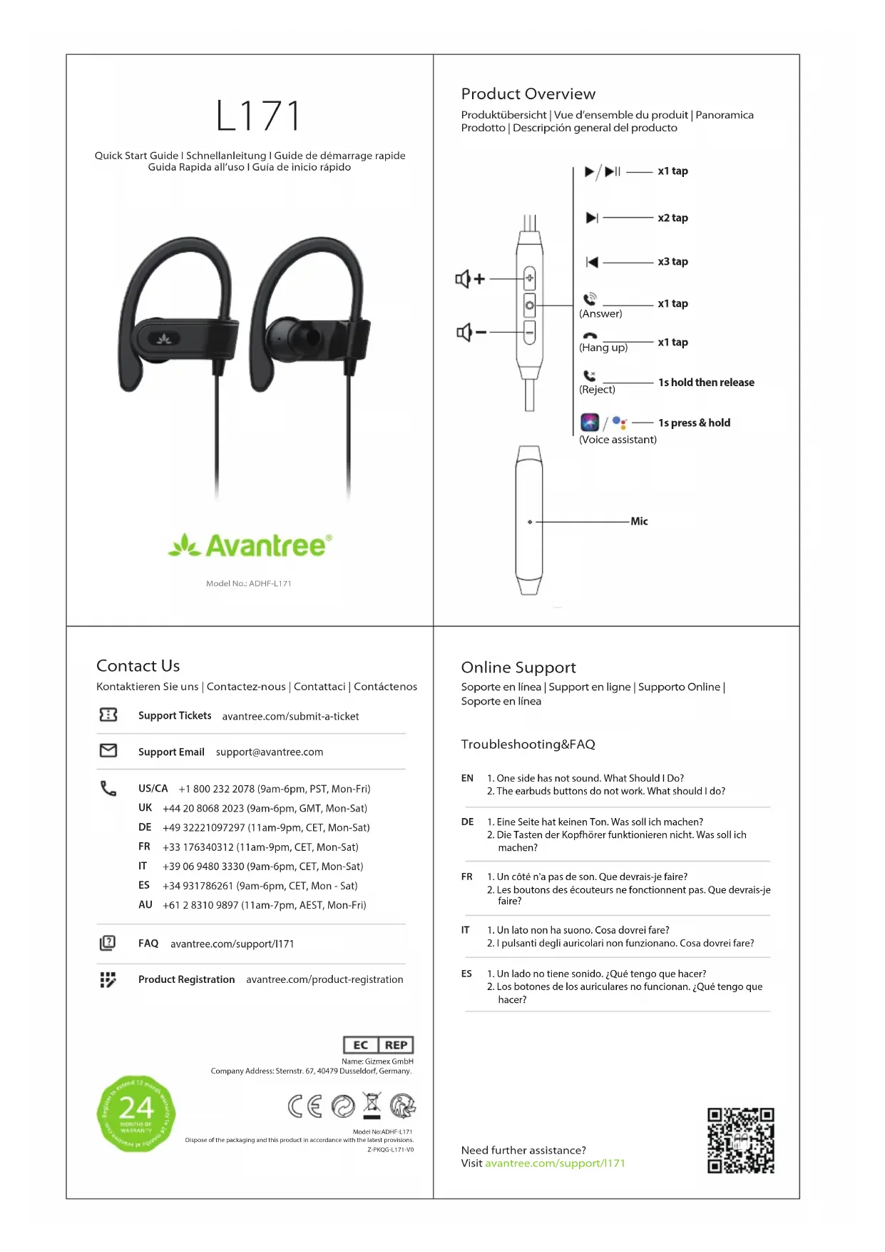 Retrouvez gratuitement la notice de l'appareil L171 Avantree au format PDF.
