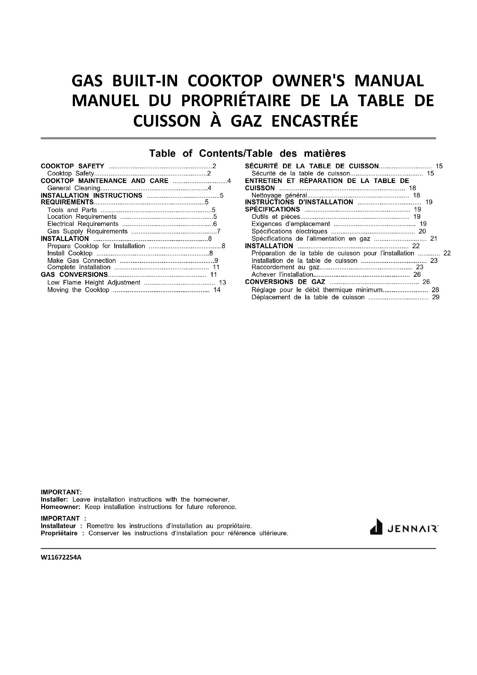 W11672254A IMPORTANT: Installer: Leave installation instructions with the homeowner. Homeowner: Keep installation instructions for future reference. IMPORTANT : Installateur : Remettre les instructions d’installation au propriétaire. Propriétaire : Conserver les instructions d’installation pour référence ultérieure.