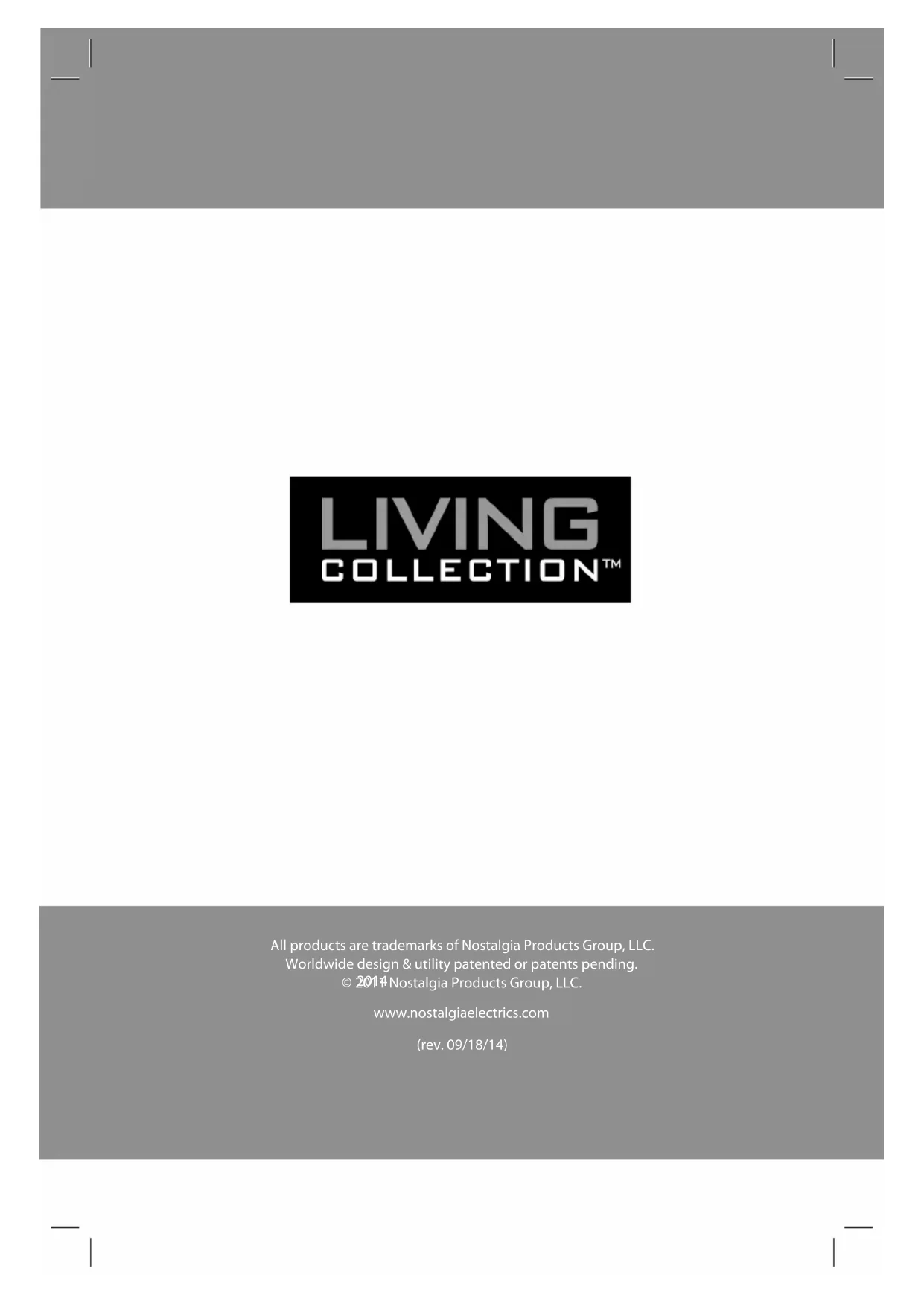 SI VOTRE APPAREIL NE FONCTIONNE PAS OU EST ENDOMMAGÉ LORSQUE VOUS LE SORTEZ DE LA BOÎTE, VEUILLEZ LE RETOURNER MINI-SERVEUR DE BUFFET À TROIS SECTIONS avec PLAQUE CHAUFFANTE / BCD122 Pour toutes autres questions pertinentes, veuillez contacter le service à la clientèle soit par courriel ou au numéro de service tel qu'indiqué ci-bas, entre 8h00 et 17h00, du lundi au vendredi, heure normale de l'est. Distribué par : Nostalgia Products Group, LLC 1471, Boul. Partnership Green Bay, WI 54304-5685 Service à la clientèle Téléphone : (920) 347-9122 Site Internet : www.nostalgiaelectrics.com Question pour le service à la clientèle Pour soumettre une question au service à la clientèle, veuillez visiter le site www.nostalgiaelectrics.com et remplir un formulaire destiné au service à la clientèle puis cliquer sur la touche Soumettre. Un représentant vous contactera sous peu. Cet appareil est conçu pour orir plusieurs années d'utilisation de performance satisfaisante, et ce, sous de conditions normales d'utilisation. Le grossiste nantit que le propriétaire d'origine se doit de faire réparer ou changer l'appareil à notre discrétion, advenant le cas de défectuosités des matériaux ou des pièces durant les 90 premiers jours en date d’achat de l’appareil neuf. Notre nantissement ne s'applique aucunement sur les dommages causés par le transport, une mauvaise utilisation de l'appareil ou le fait d'échapper l'appareil. Un produit réclamé défectueux, soit suite à sa fabrication ou une mauvaise utilisation sera évaluée à l’entière discrétion du grossiste. An que la garantie couvre ce produit, veuillez contacter Nostalgia Products Group, LLC au numéro de téléphone suivant ou en remplissant un formulaire de question destine au service à la clientèle situé sur le site Internet : www. nostalgiaelectrics.com. La présente garantie ne s'applique pas aux marchandises réusinées. Lire ces instructions attentivement. Le manque de vous conformer à ces instructions, de tous dommages causés par un remplacement erroné des pièces, l’abus ou mauvaise utilisation de l’appareil annulera toute promesse faite à votre égard, et prévaudra sur toute autre garantie, implicite ou expresse. Pour plus d’informations, visitez notre site Web à www.nostalgiaelectrics.com. Aimez-nous sur Facebook à l’adresse www.facebook.com / NostalgiaElectrics. Suivez nos conseils sur Pinterest à www.pinterest.com / nostalgiaelctrx. Tweet avec nous sur Twitter à l’adresse www.twitter.com / NostalgiaElctrx.16 FRANÇAIS