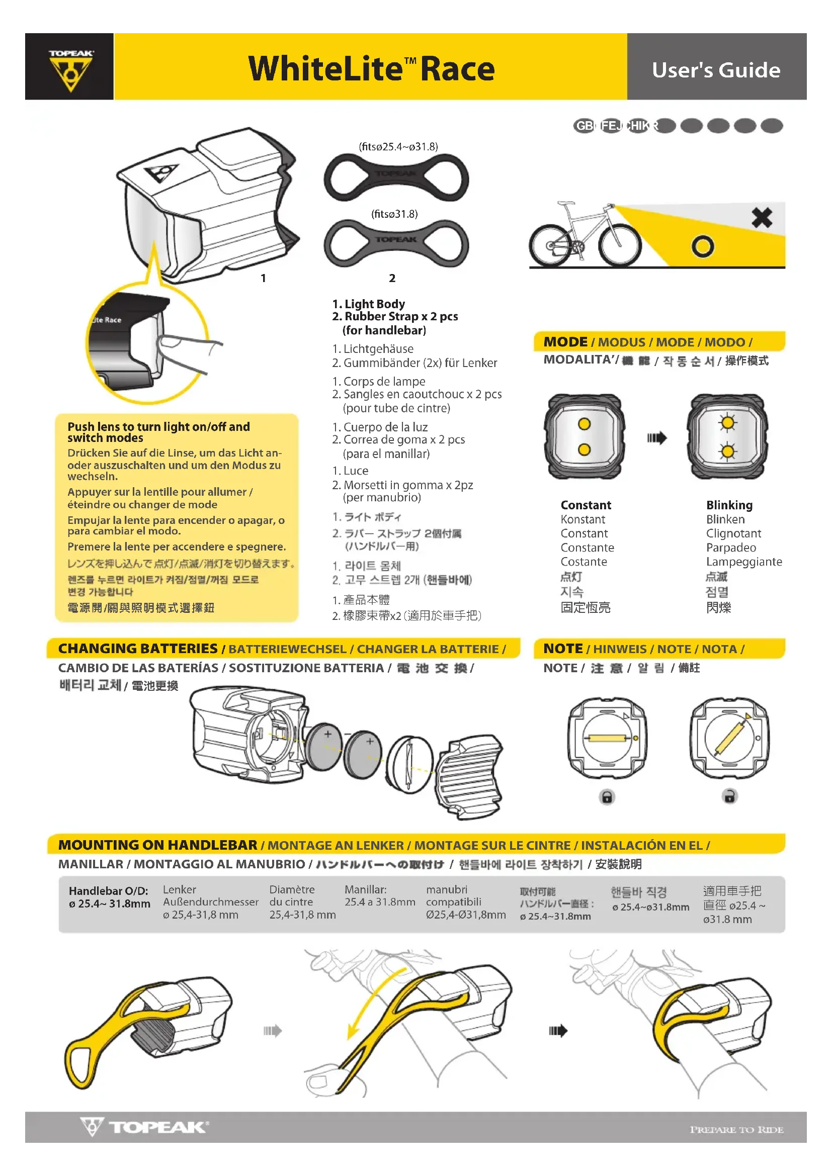 Retrouvez gratuitement la notice de l'appareil WhiteLite Race Topeak au format PDF.
