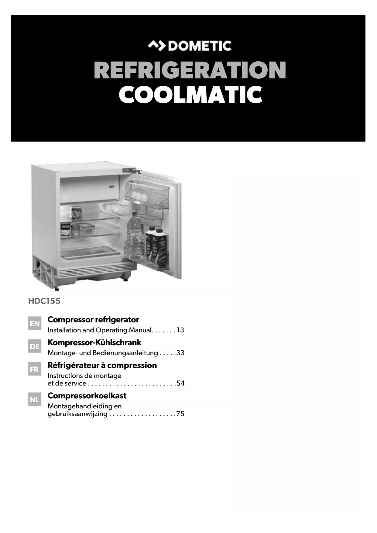 Retrouvez gratuitement la notice de l'appareil CoolMatic HDC 155FF DOMETIC au format PDF.