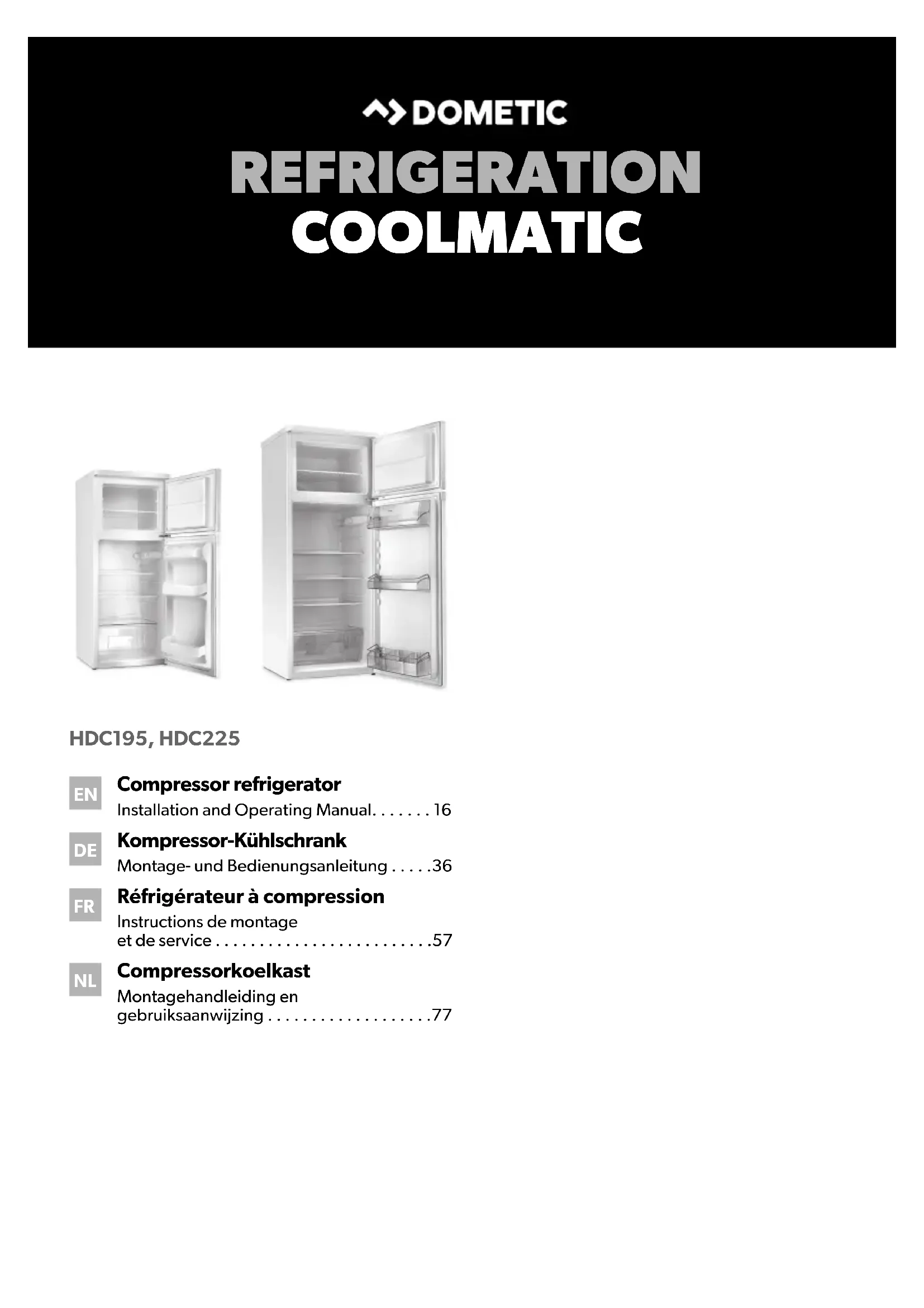 Retrouvez gratuitement la notice de l'appareil CoolMatic HDC 225 DOMETIC au format PDF.
