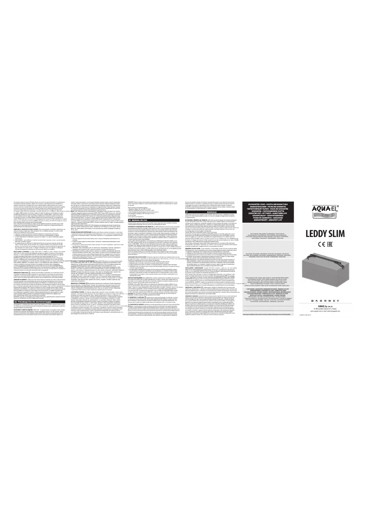 vitres latéraux de la cuve sont une alternative élégante au couvercle classique de l'aquarium. Leur utilisation per- met d’obtenir un effet décoratif unique, combiné avec les valeurs pro-santé (l’aquarium ouvert humidifie l'air et améliore le microclimat de la chambre). Idéales pour les aquariums plantés, récifaux et décorés dans un style na- turel. Elles sont faciles à installer (elles disposent des supports coulissants fonctionnels), polyvalentes (adaptées aussi pour des réservoirs avec une longueur non-standarde), parfaites pour les plantes d'aquarium et de corail (un spectre de la lumière soigneusement séléctonné), et en même temps économes en énergie et de longue durée. Les lampes LEDDY SLIM sont disponibles en quatre versions avec la différence dans le type de lumière émise. Les modèles SUNNY (émettent de la lumière similaire à la lumière du soleil avec une température de couleur de 6500K imitant fidèlement la couleur des plantes et des poissons) et PLANT (8000 K - émettent de la lumière avec une utilisation accrue des vagues rouges et bleues parfaites pour les besoins des plantes) sont conçus pour les aquariums d'eau douce. Les modèles MARINE (émettent une forte lumière blanche avec une température de couleur 10000K idéale pour la croissance et le développement des coraux) et ACTINIC (émettent de la lumière bleue avec une température de couleur de 20000K renforçante les couleurs et les effets d'éclairage des coraux et autres invertébrés marins) sont conçus pour les réservoirs marins. Grâce à l'utilisation des LED modernes, les lampes LED SLIM émettent beaucoup plus de lumière qu'une lampe classique tout en consommant environ 50% moins d'énergie. Elles n’exigent pas un remplacement fréquent. La durée de leur travail est calculée jusqu'à 50.000 heures. CONDITIONS D' UTILISATION EN TOUTE SÉCURITÉ. Votre nouvel appareil aété fabriqué conformément aux normes de sécurité en vigueur dans l'Union européenne. Pour son utilisation prolongée et en toute sécurité, veuillez lire les conditions de sécurité suivantes: