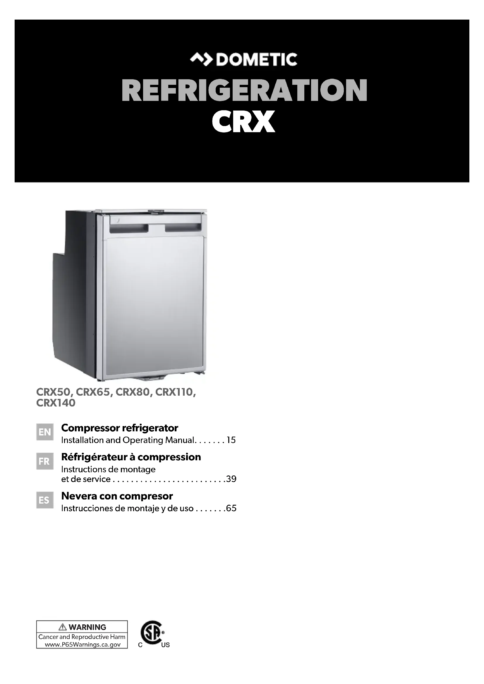 Retrouvez gratuitement la notice de l'appareil CRX 80U DOMETIC au format PDF.